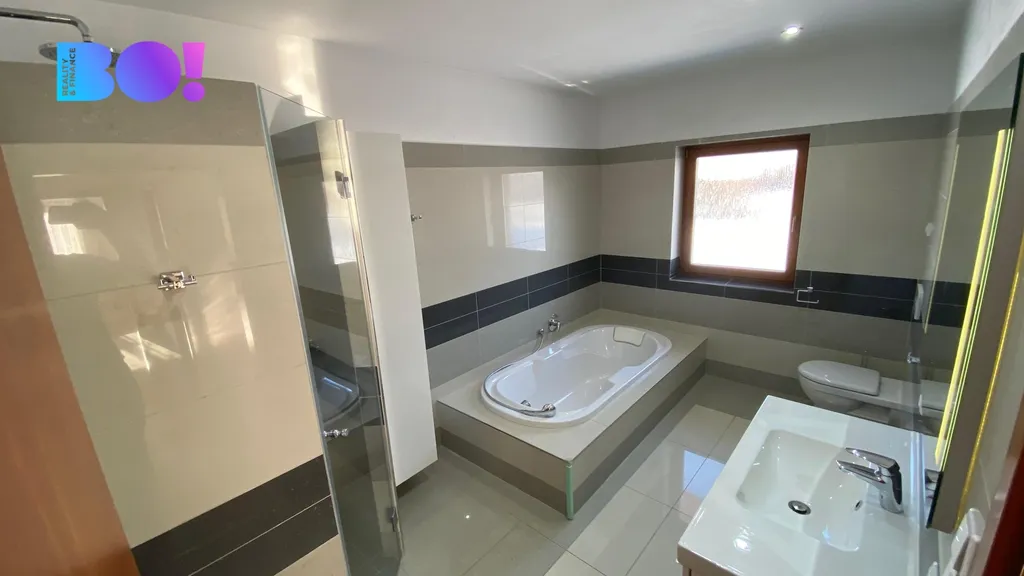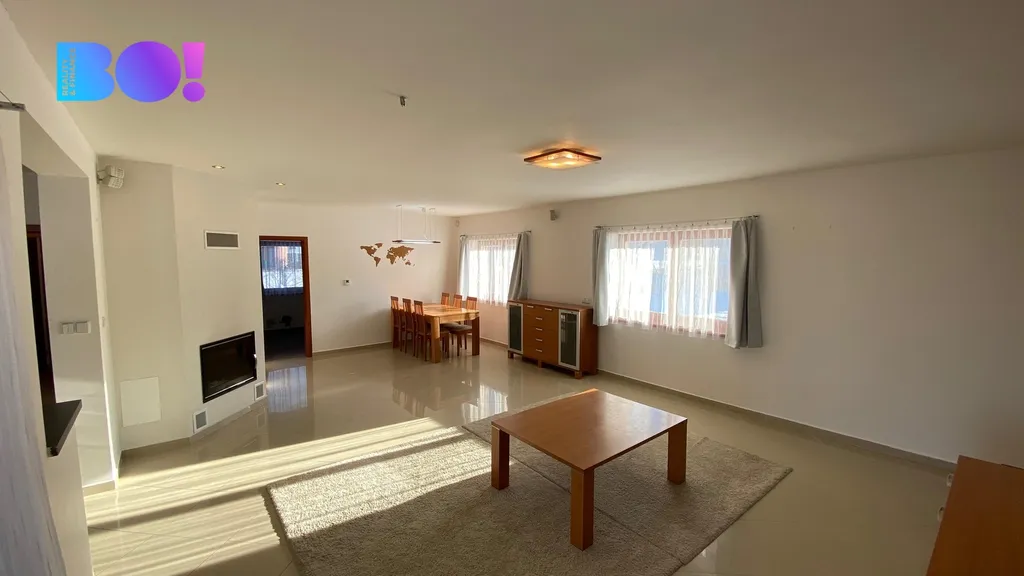 Dům o dispozici 3+kk má užitnou plochu 144 m² a nachází se na rovinatém, celodenně prosluněném pozemku o výměře 1 102 m². Součástí pronájmu je samostatná dvojgaráž o velikosti 53 m².