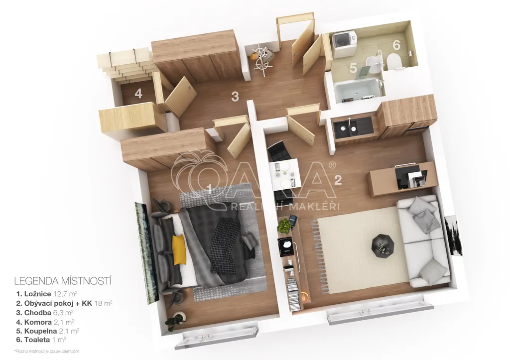 Byt má velmi praktickou dispozici vhodnou pro jednotlivce i pár: