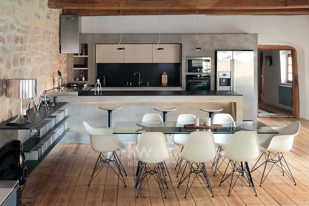 Na prodej nabízíme výjimečný venkovský statek nedaleko Prahy, který představuje jedinečné spojení původní historické atmosféry a moderního designu. Usedlost prošla kompletní a mimořádně citlivou rekonstrukcí vedenou renomovanou interiérovou designérkou Martinou Schultes, která při návrhu interiéru pracovala s kombinací přírodních materiálů, betonových stěrek, černé žuly a zakázkových prvků vytvářených na míru. Díky tomu vznikl harmonický celek, v němž se moderní estetika prolíná s autentickými prvky tradiční architektury.