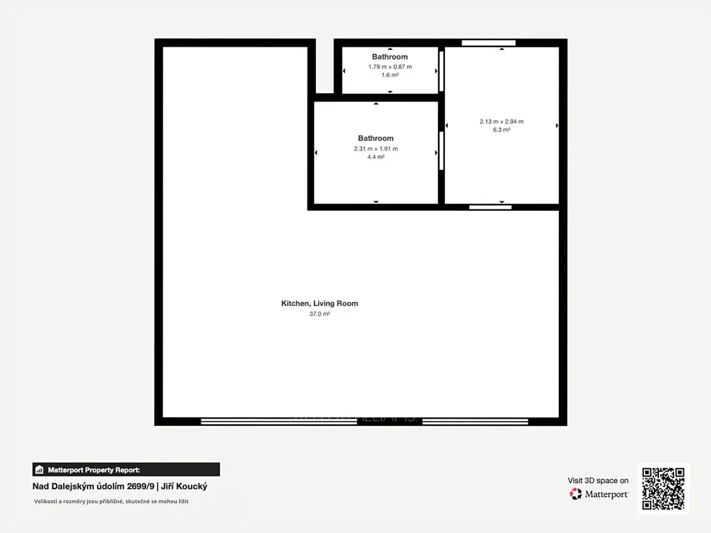 Dispozice nabízí nadstandardní komfort na byt 1+kk a velmi příjemně se v ní žije.
