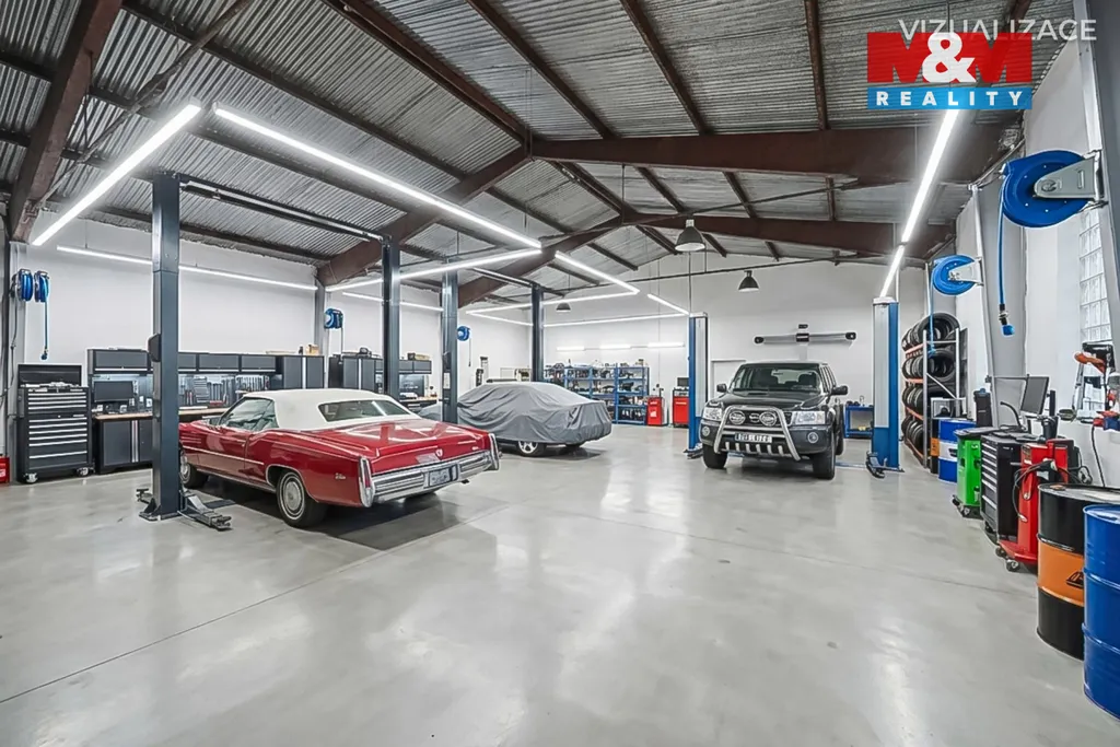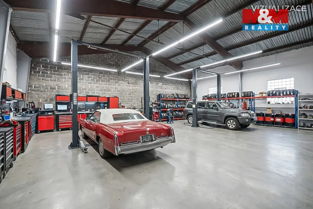 Hledáte zajímavý investiční záměr ve světě automobilů? Právě proto vám nabízíme tyto prostory, které mají široké využití. Nabízejí možnost skladování nebo také větší autoservis. Prostory obsahují čtyři velké garáže a kancelářské zázemí. Obrovskou výhodou je prostorný pozemek, který lze využít například jako parkoviště s potenciální příjezdovou cestou ze zadní části. Všechny vrata jsou poháněny elektrikou. Samotný objekt má elektrická vrata i v zadní části, proto je objekt průjezdný na pozemek. Nemovitost má mnoho využití a obrovský potenciál. V případě zájmu o prohlídku nás neváhejte kontaktovat a rádi Vás provedeme. S financováním vám rád pomůže náš finanční specialista.