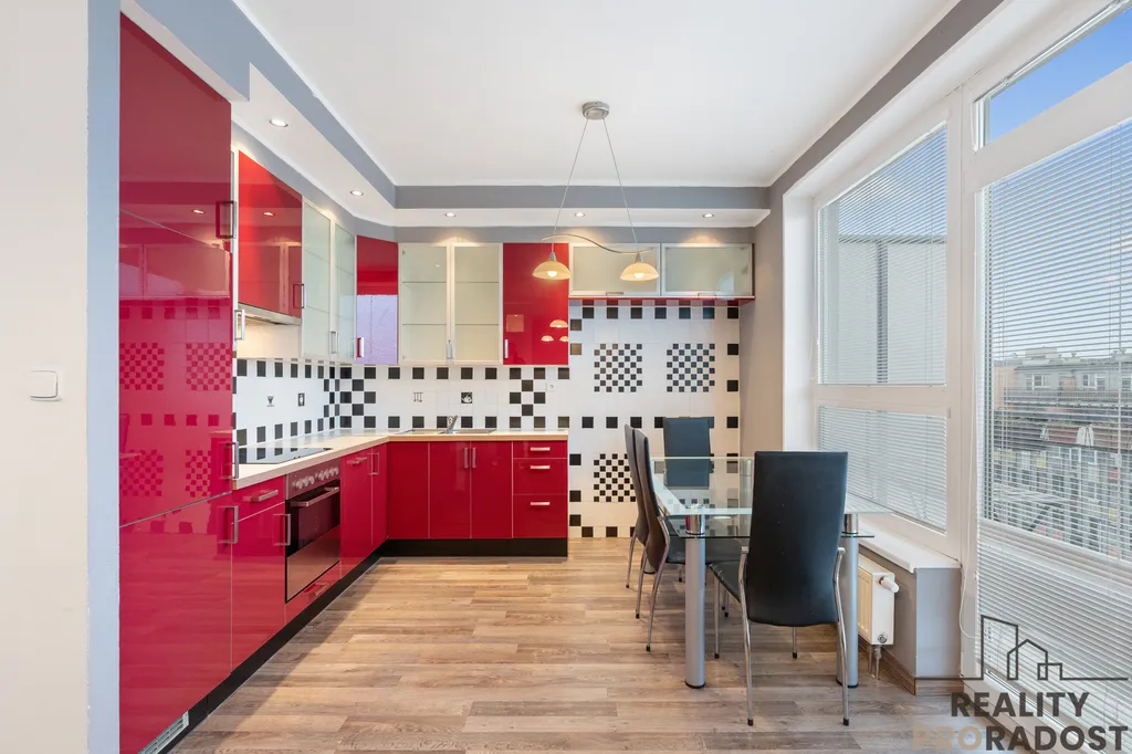 Nabízíme k pronájmu světlý a prakticky řešený byt 3+kk o výměře 63 m² se dvěma balkony o celkové ploše 15 m². Byt se nachází v 7. nadzemním podlaží moderního developerského projektu NOVA HARFA II od společnosti FINEP. Byt se skládá z obývacího pokoje s kuchyňským koutem, dvou neprůchozích ložnic, předsíně, koupelny, samostatného WC a dvou balkonů (5 m² a 10 m²). Kuchyňská linka má vestavěné spotřebiče kromě myčky nádobí, v koupelně je pračka se sušičkou.