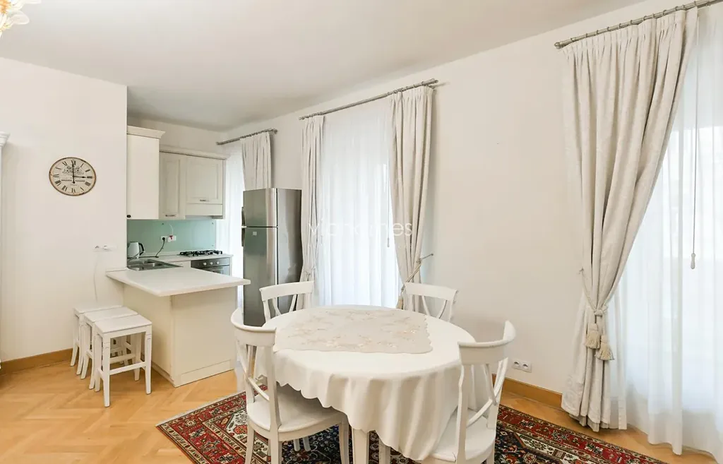 Interiér bytu nabízí obývací pokoj s jídelnou a plně vybavenou kuchyní, 2 ložnice, koupelnu, samostatnou toaletu pro hosty.