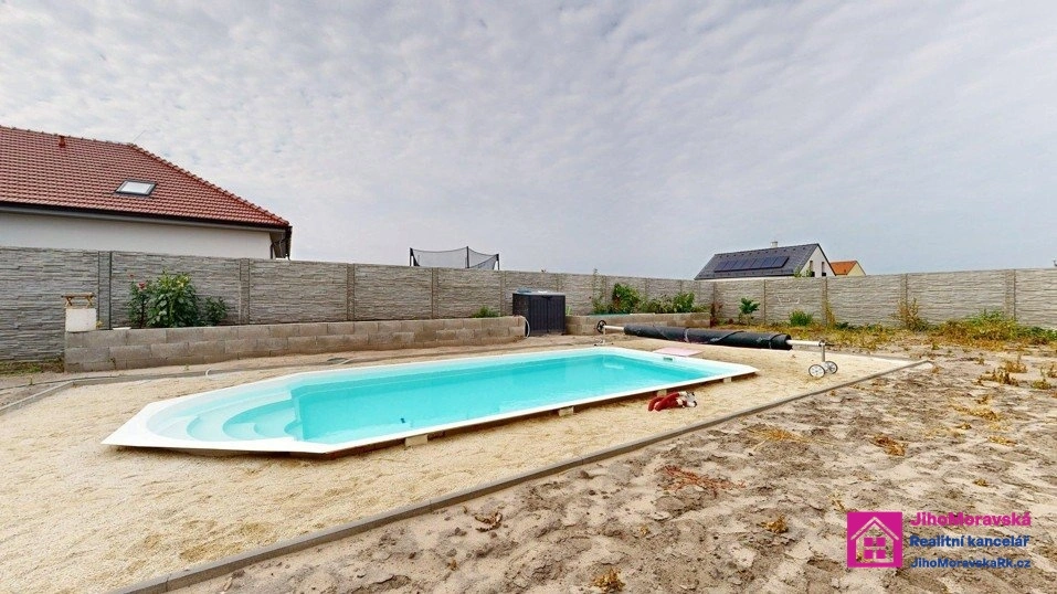 Okolí bazénu a zahradu si můžete doladit dle vlastních představ. Celý pozemek je oplocen.