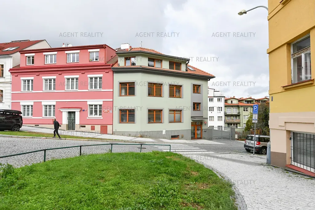 V dosahu veškerá občanská vybavenost (restaurace, obchody a služby). Nedaleko park Ladronka a sportoviště Strahov. Dostupnost MHD směr Břevnov - Smíchov a centrum 15 minut. Parkování možné v ulici před domem.