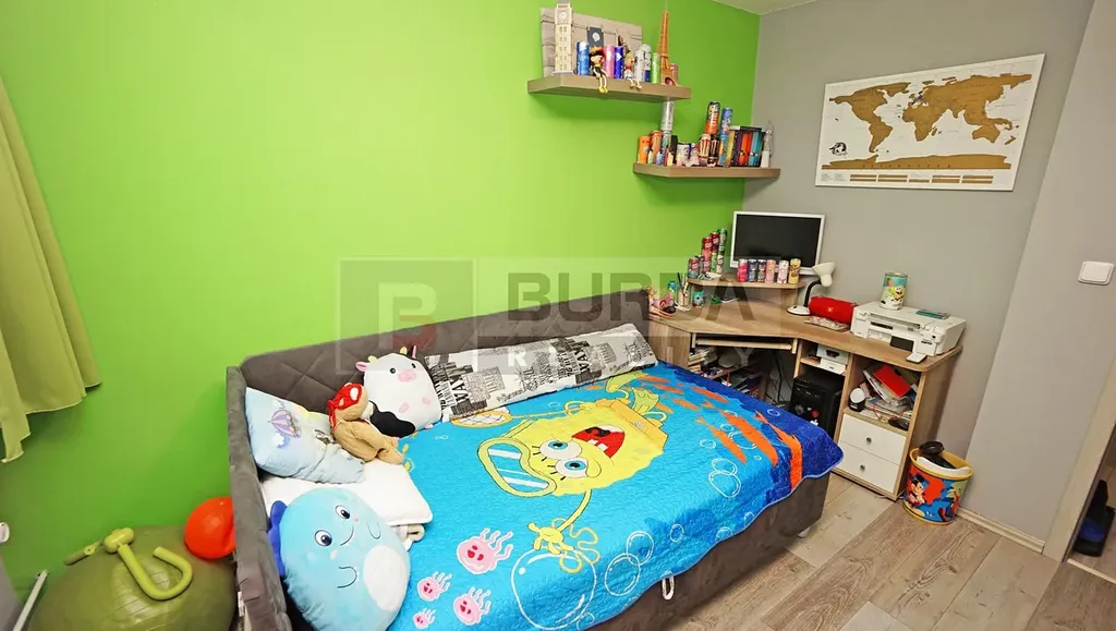 Nábytek v obývacím pokoji lze zanechat, v ložnici lze zanechat postel a velkou šatní skříň, v dětském pokoji může zůstat velká skříň, ostatní nábytek v dětském pokoji nezůstane, rovněž nezůstane pračka, botník a věšáková stěna v chodbě.