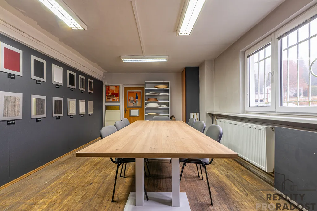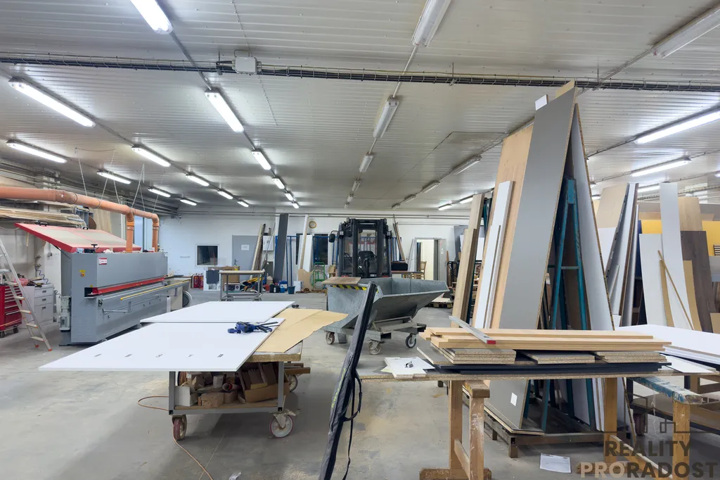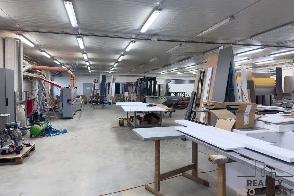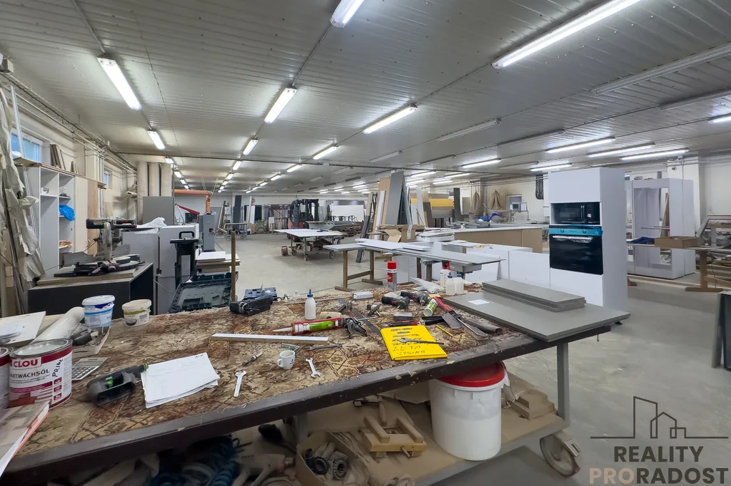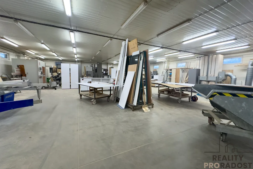 Hlavní budova má celkovou výměru cca 741 m² a zahrnuje výrobní halu o ploše cca 450 m² a dále kanceláře a vzorkovou prodejnu o ploše cca 290 m².