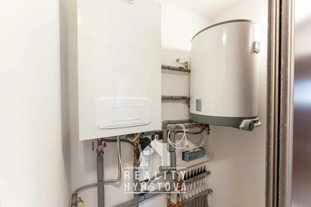 O teplou vodu se stará kombinovaný bojler (80 l), který lze ohřívat jak plynem, tak elektřinou.