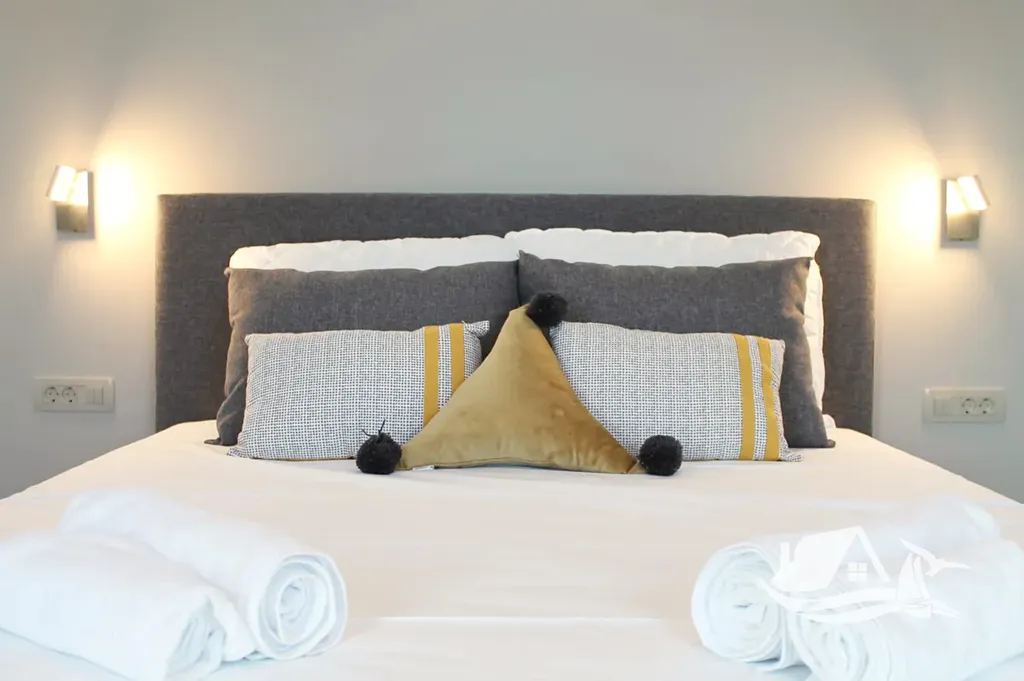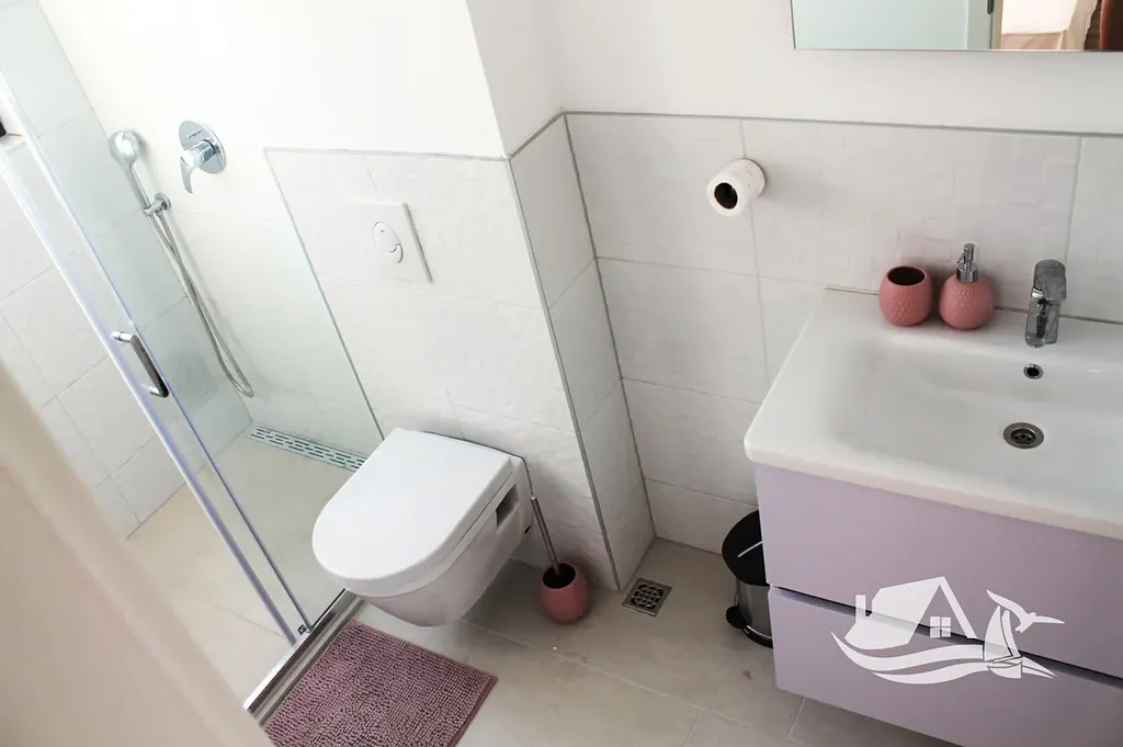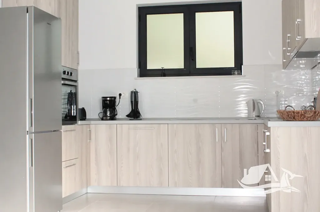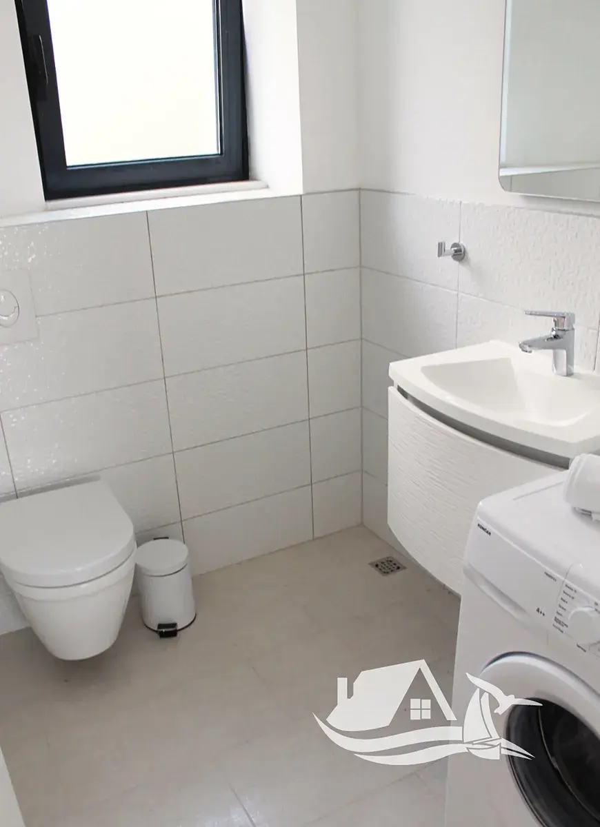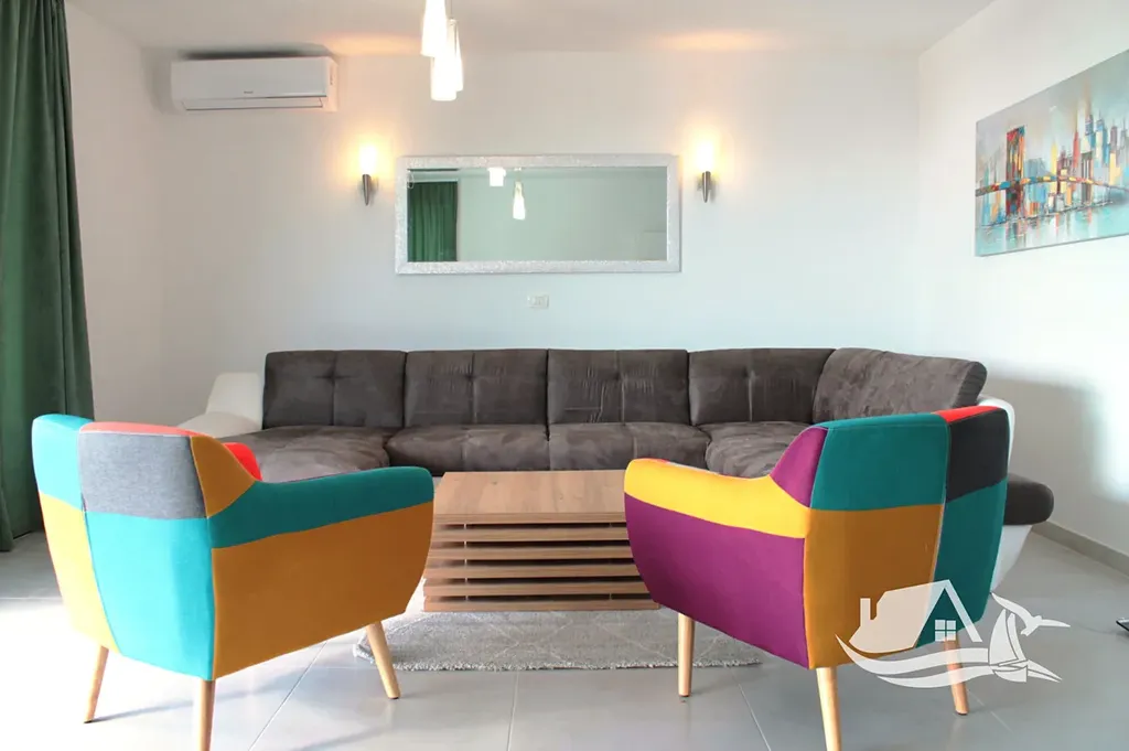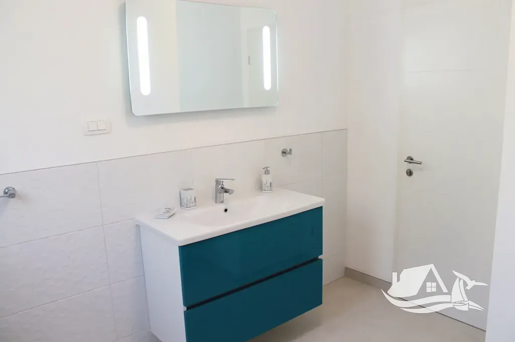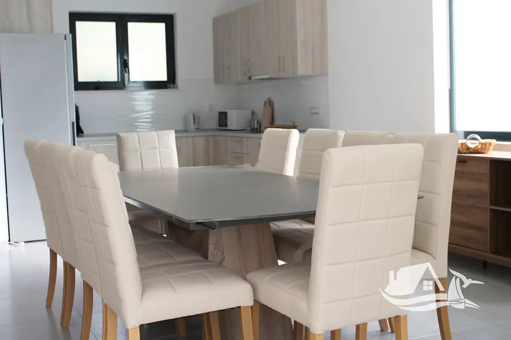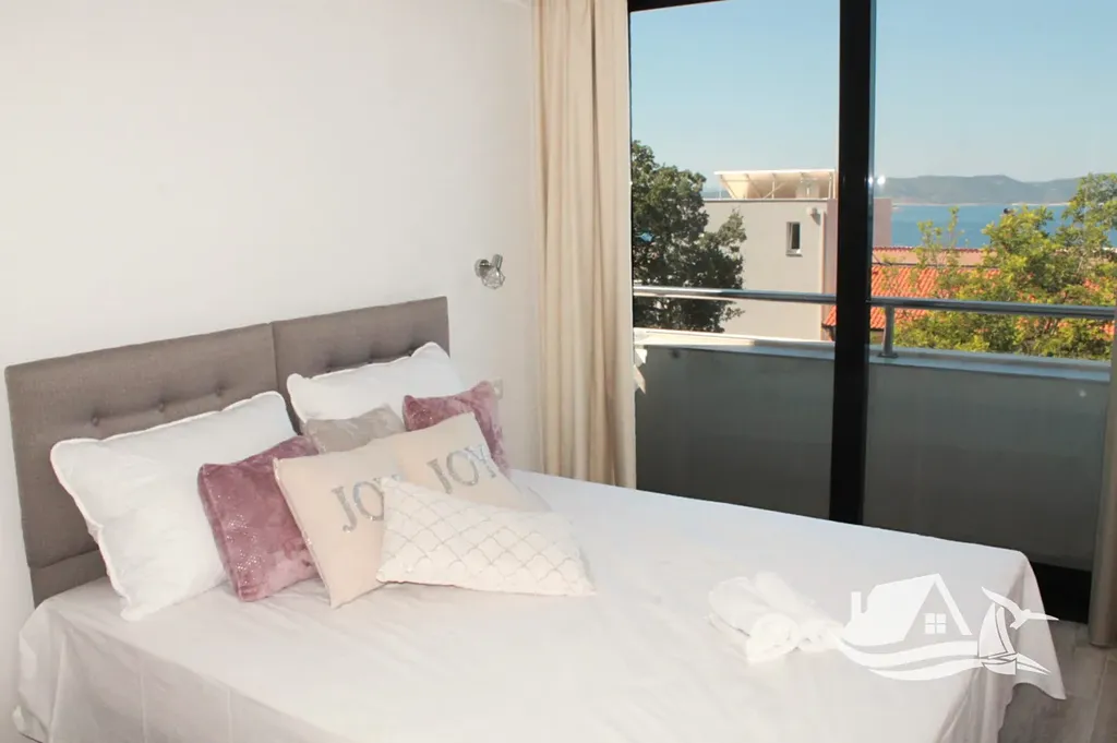 V přízemí a prvním patře se rozkládá hlavní mezonetový byt o ploše 212 m². Vstupní úroveň zahrnuje prostorný obývací pokoj propojený s jídelnou a kuchyní, toaletu pro hosty a přímý vstup na terasu s bazénem o velikosti cca 30 m². Sluneční terasa kolem bazénu nabízí ideální prostor pro odpočinek s výhledem na moře a okolní ostrovy. V horním patře tohoto bytu se nacházejí tři prostorné ložnice, každá s vlastní koupelnou, a balkon o ploše 15 m² s panoramatickým výhledem.