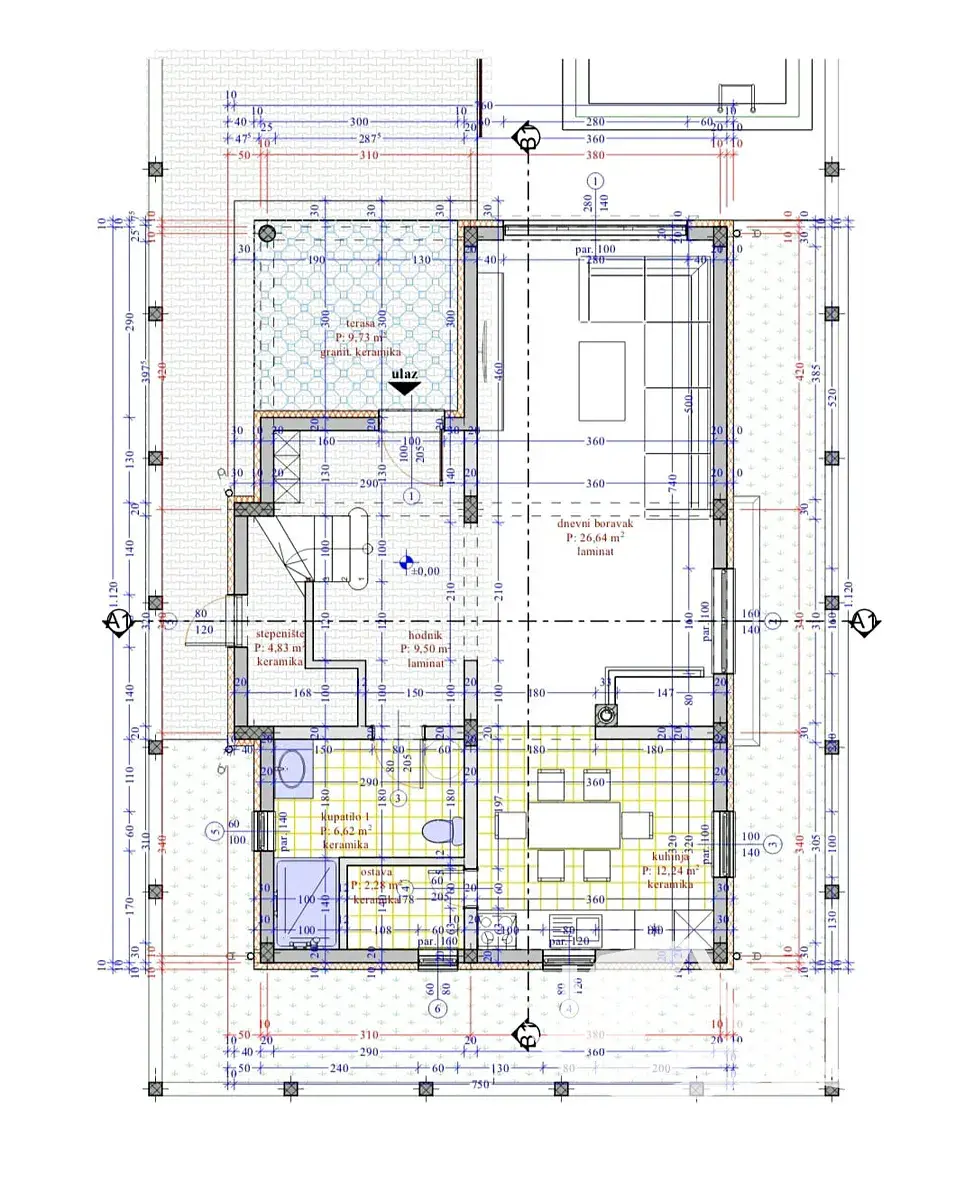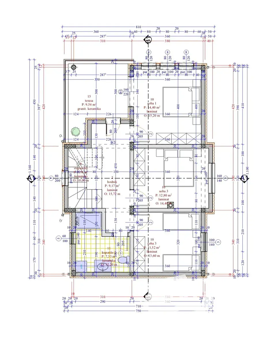 Dům se nachází na pozemku o rozloze 272 m² a nabízí celkovou hrubou plochu 180 m², přičemž čistá užitná plocha činí 145 m². Ve spodním patře se nachází prostorný obývací pokoj s jídelním koutem a plně vybavenou kuchyní, která je již zahrnuta v ceně. Součástí přízemí je také koupelna a praktická komora, ideální pro uložení všeho, co má zůstat mimo dohled, ale stále po ruce. V patře se nacházejí tři pohodlné ložnice, každá s vlastní klimatizací, a druhá koupelna. Dům má dva vchody – jeden z přední a druhý ze zadní strany, což umožňuje větší flexibilitu využití venkovního prostoru.