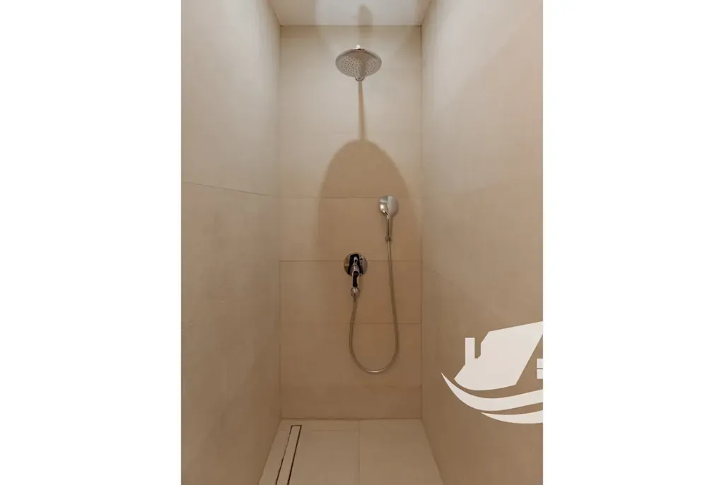 Součástí nabídky je také velká uzavřená garáž, která kromě bezpečného parkování poskytuje i další úložný prostor. Celý rezidenční komplex disponuje společným bazénem s výhledem na moře a vydlážděným prostorem vhodným pro grilování, setkávání s přáteli nebo menší společenské akce. Díky tomu si můžete užívat nejen soukromí svého bytu, ale také sdílené komfortní zázemí s ostatními obyvateli domu.