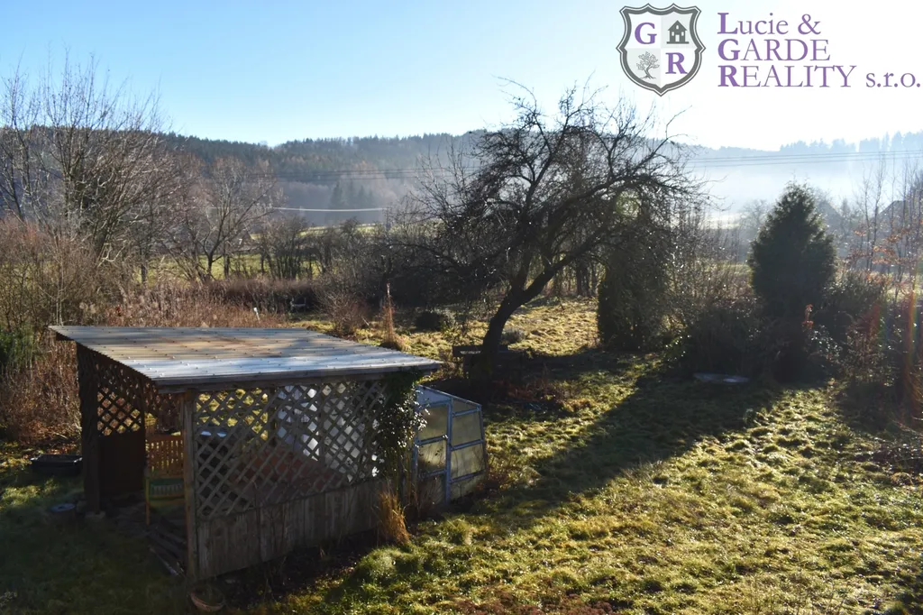 Na okraji chráněné krajinné oblasti Šumava (evropsky významná lokalita) se nachází velkorysý pozemek o CP 4762 m2 s menším rodinným domkem z 90. let, jehož kolaudace proběhla v roce 2001. Jedná se o podsklepenou, dvoupodlažní stavbu s obytným podkrovím (skladba kámen, plné cihly - podzemní podlaží, porobetonové tvárnice Hebel - nadzemní podlaží) o dispozici 3+kk. Zastavěná plocha domu je 59 m2, v suterénu se nachází garáž a sklepní prostory, ve zvýšeném přízemí vstupní chodba se zasklenou terasou, zádveří, koupelna s WC a obytný prostor s kuchyňským koutem. V podkroví se nachází 2 pokoje a společné prostory schodiště. Dům je vytápěn krbovými kamny, elektrickými panely, napojen na vlastní studnu, odpad sveden do vyvážecí jímky o objemu 20 m3.