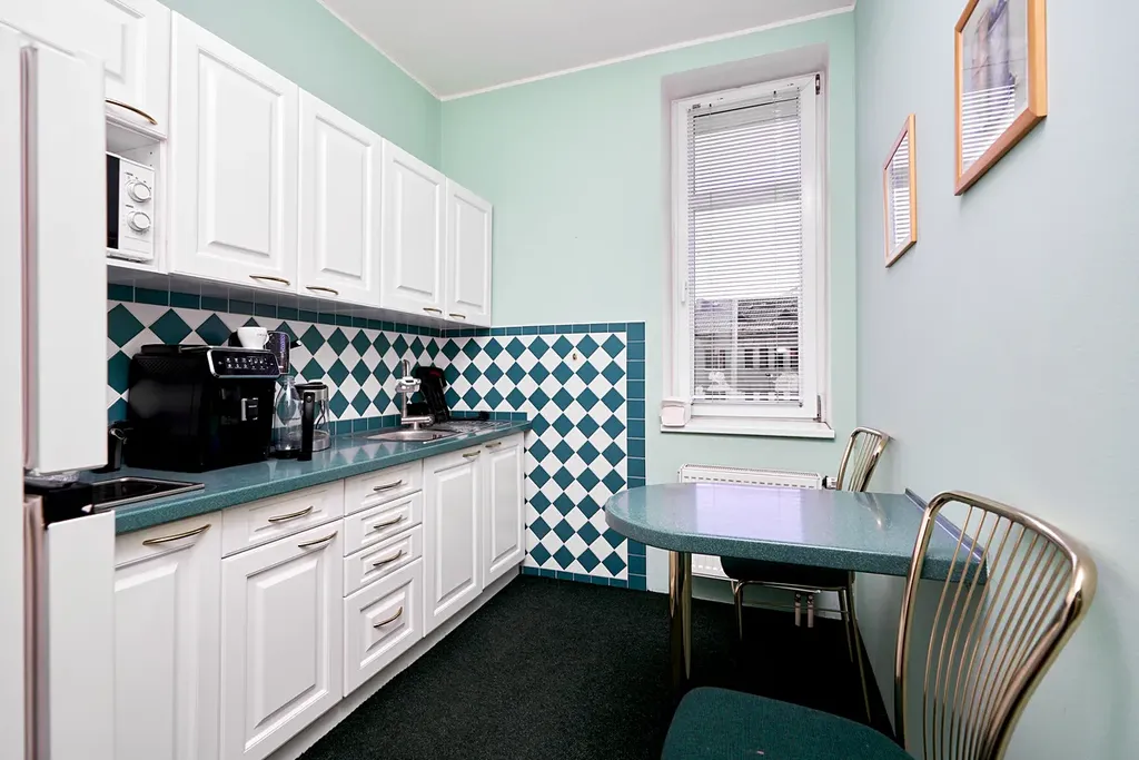1. Patro nad veter. klinikou jsou reprezentativní prostory 198 m2 s kancelářemi, zasedací místností, koupelnou, kuchyňkou a 2x WC.