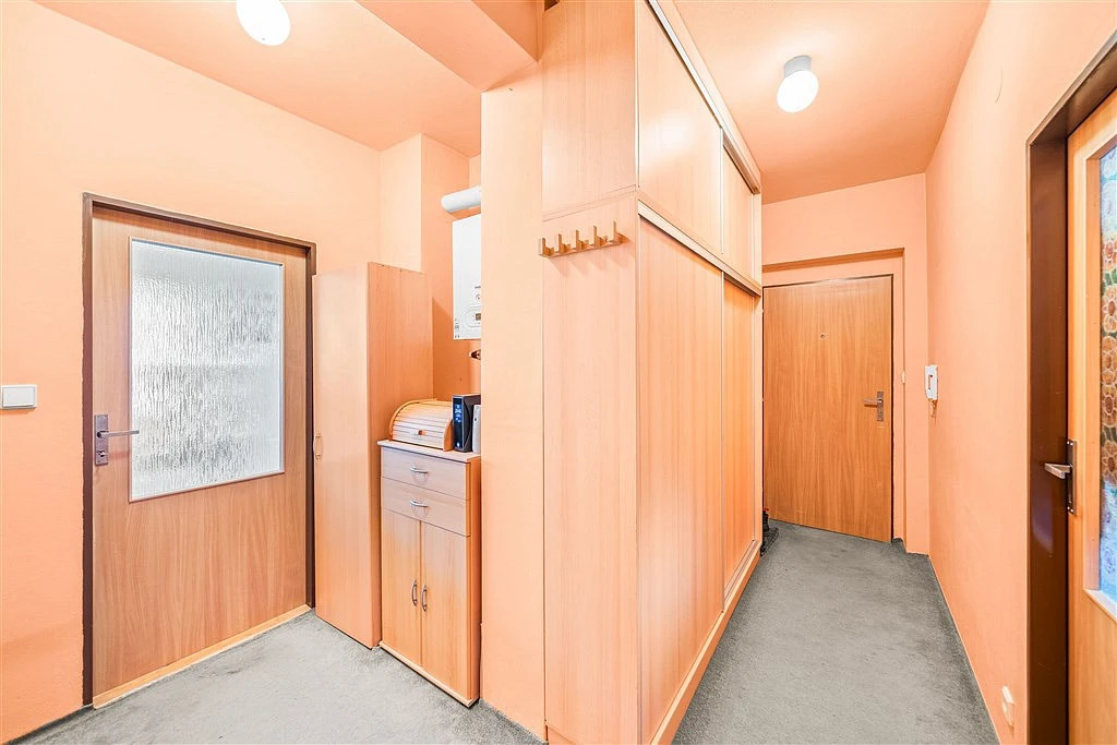 Vytápění bytu i ohřev teplé vody zajišťuje plynový kombinovaný kotel.