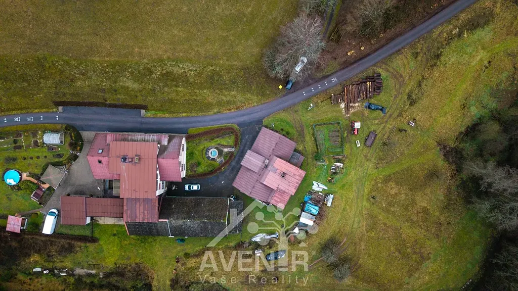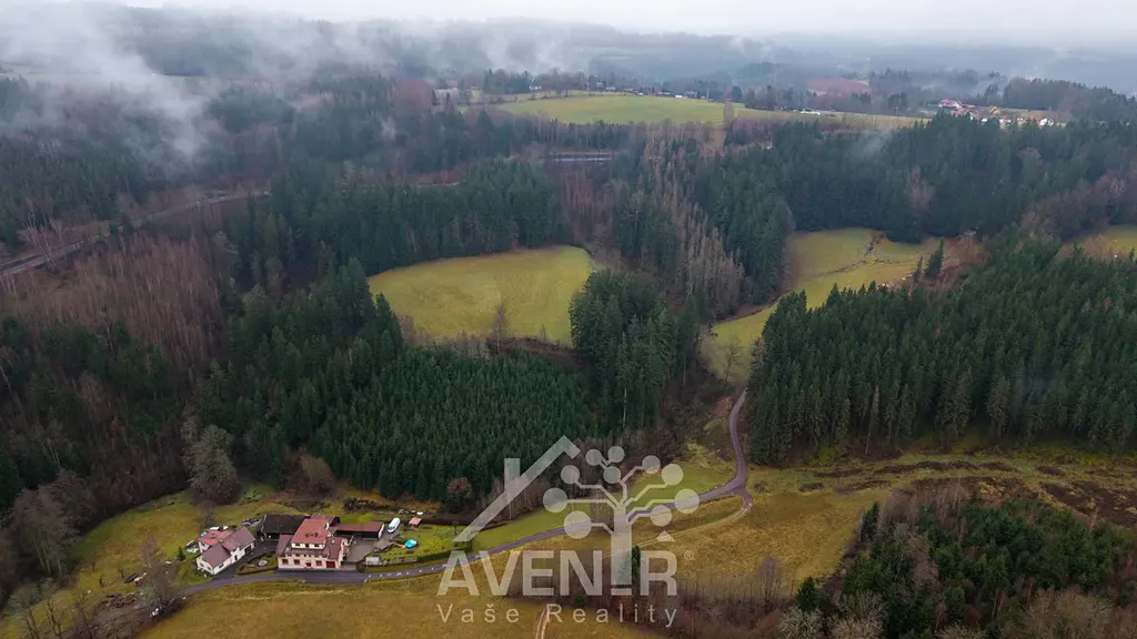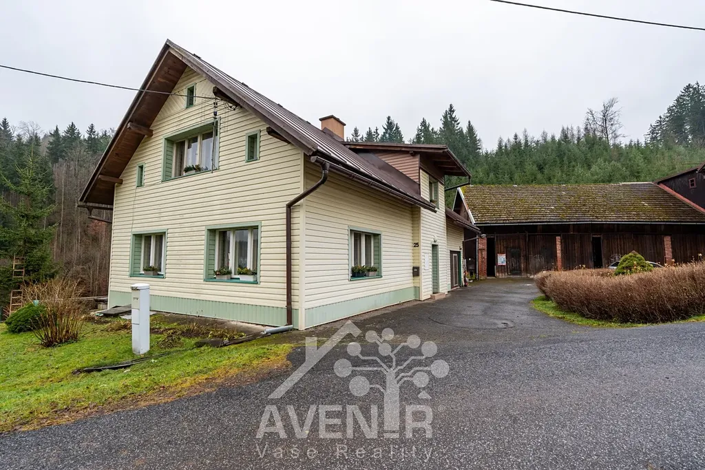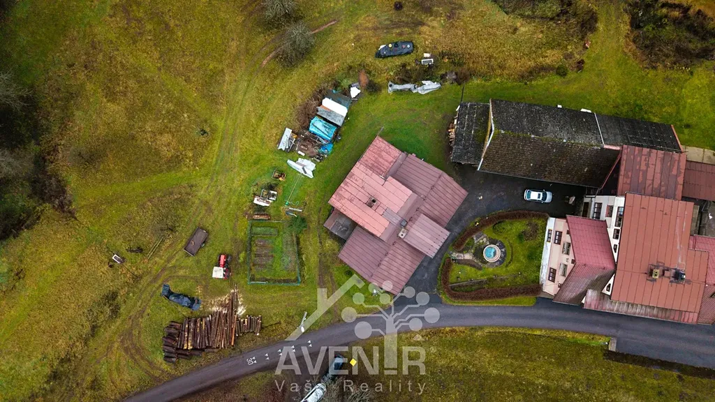 Dům stojí na slunném pozemku o celkové rozloze 1336 m2 a zastavěnou plochou 122 m2. Součástí je také velká stodola, která leží vedle domu. K domu je možné přikoupení dalších dvou pozemků sousedících s touto nemovitostí o rozloze 7.297 m2 a lesním pozemkem o rozloze 999 m2.