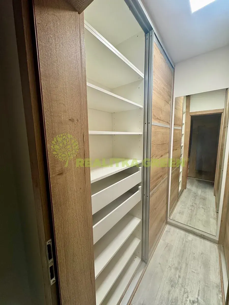 Nová kuchyňská linka včetně vestavěných spotřebičů - myčka, mikrovlnná trouba, elektrická trouba, indukční deska, digestoř. Kuchyň je vybavena lednicí a jídelním stolem. V obývacím pokoji je k dispozici sedací souprava, konferenční stolek a tv stolek.
