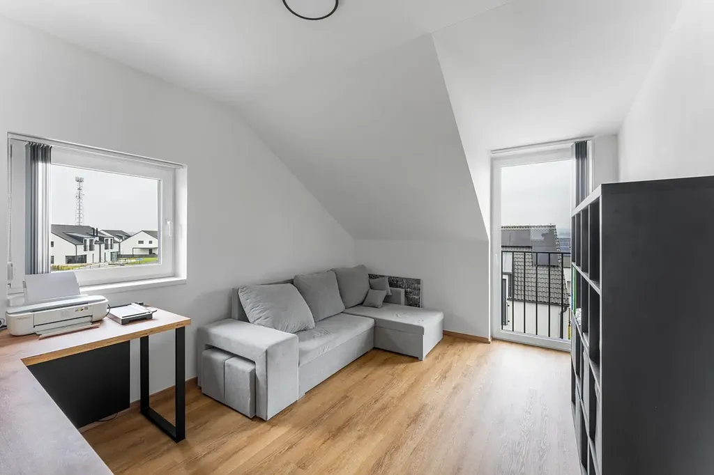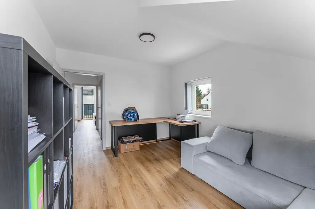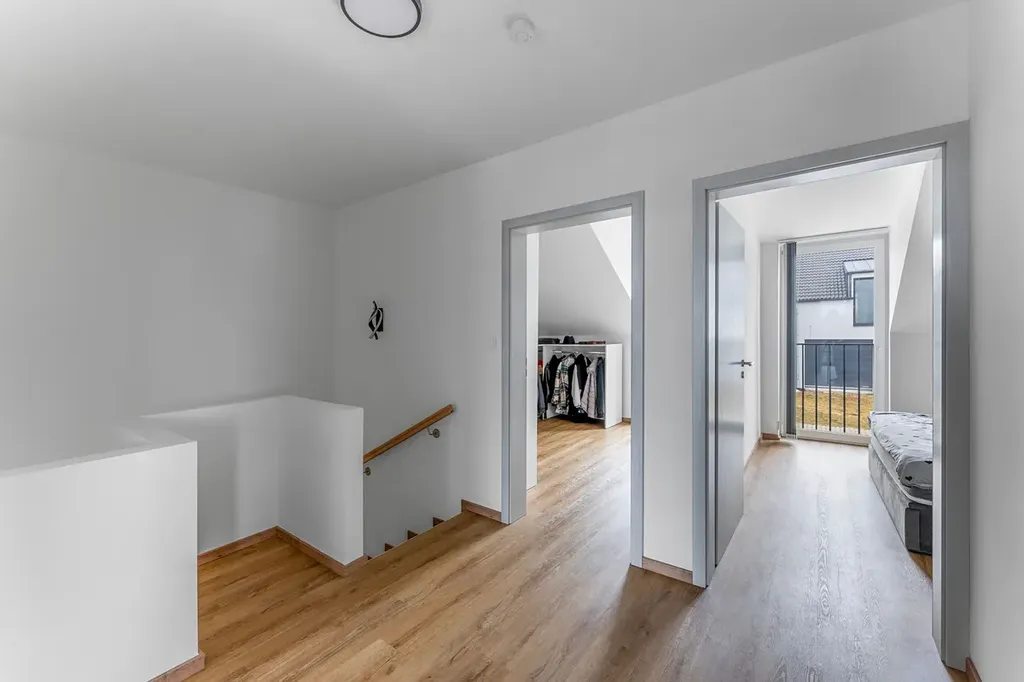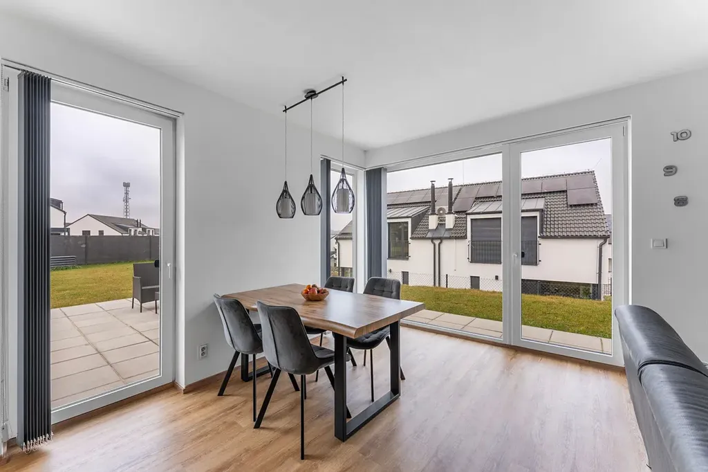 Interiér: Vinyl na podlahách, v koupelnách a v předsíni dlažba. Prosvětlené prostorné místnosti, prostorná terasa s výhledem do krajiny, variabilní dispozice, která umožňuje kombinaci pokojů, pracoven, ložnic atd.