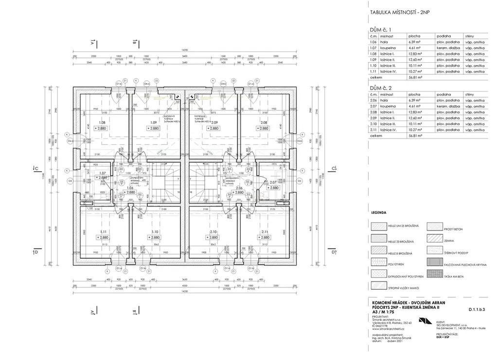 • 4x ložnice: 10,11 m², 10,27 m², 12,60 m², 12,83 m²