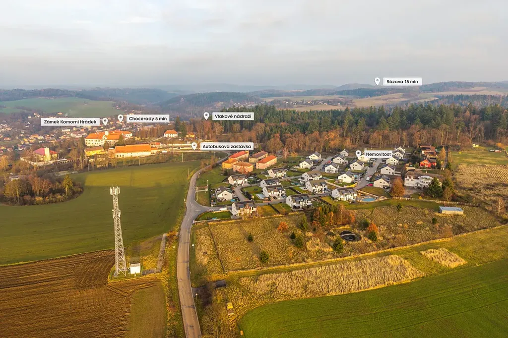 Nabízíme k prodeji moderní rodinný dům 5+kk s nízkými provozními náklady v nové lokalitě Komorního Hrádku u Chocerad ve Středočeském kraji. Dům byl kolaudován v roce 2024 a je připraven k okamžitému nastěhování.