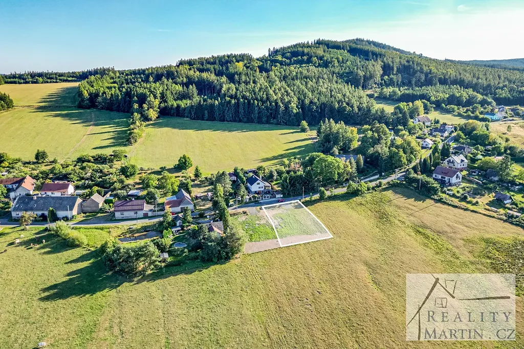 Pozemek mírně svažitého charakteru s krásným a nerušeným výhledem na okolní louky a lesy je napojen na obecní vodovod (vodovodní šachtice na pozemku), tlakovou kanalizaci (vyvedena na pozemku) a elektřinu (ČEZ).