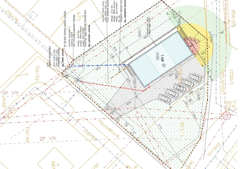 Stavební povolení pro rodinný dům s nebytovými prostory - obsahující v 1. NP 2 nebytové prostory - kanceláře se zázemím a garáž užívanou výhradně pro byty a v 2. NP 3 byty 2+kk s příslušenstvím. Na žádost zašlu stavební podklady včetně Povolení ke stavbě ze dne 15.4.2025.