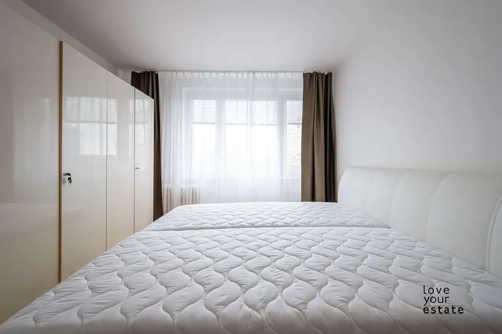 Kuchyň je zcela nová s varnou deskou, elektrickou troubou, digestoří a lednicí, jídelní stůl + 4x židle. V koupelně je sprchový kout a pračka, WC samostatně. V předsíni úložné prostory na oblečení i botník. V ložnici nová manželská postel, noční stolky a šatní skříně. Plně vybavený obývací pokoj nábytkem se vstupem na balkon. Vše co vidíte na fotkách, v bytě zůstává.