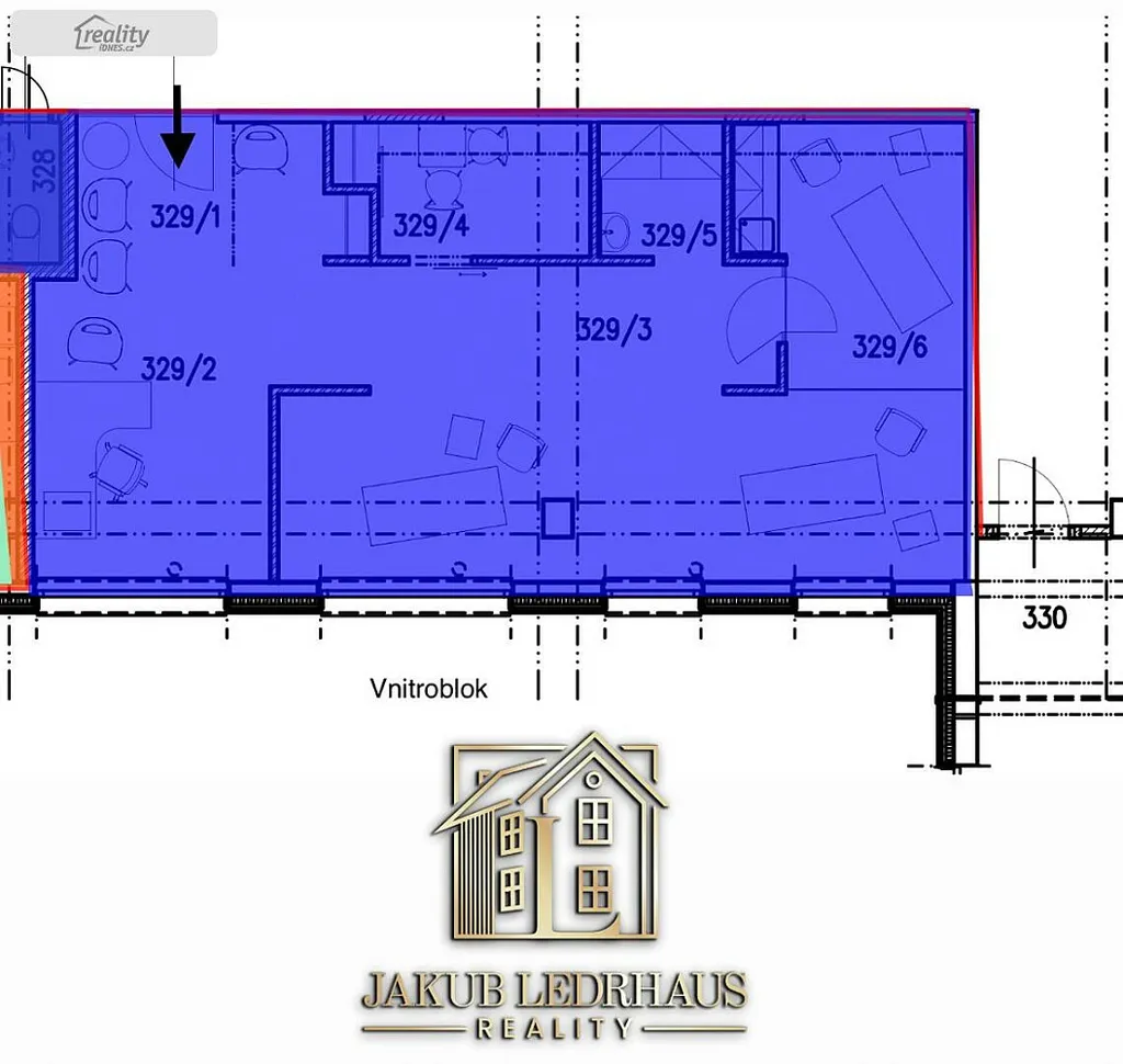 Vhodné pro menší firmu, administrativu, poradenství nebo ateliér.