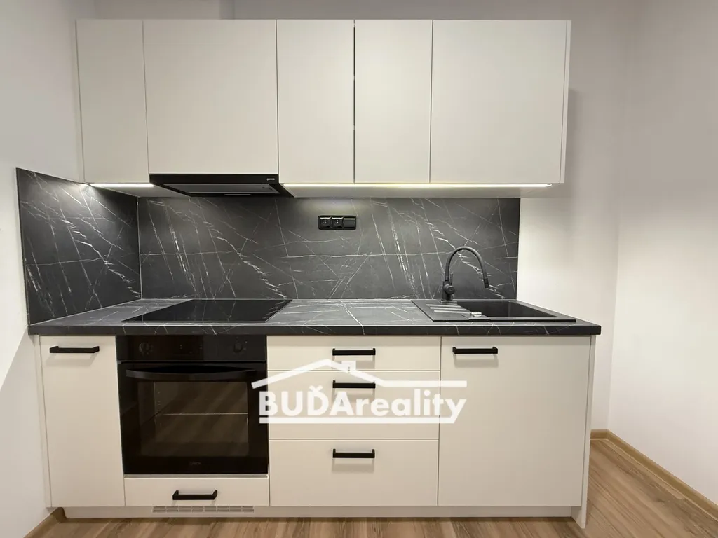 Bytová jednotka v 1. NP o celkové ploše 44 m2 se skládá: z předsíně, koupelny s toaletou , obývacího pokoje s kuchyní, ložnice a sklepní kóje. V koupelně je použita atraktivní velkoformátová dlažba s obkladem a je vybavena sprchovým koutem, umyvadlem se zrcadlovou skříňkou, toaletou a otopným el. žebříkem s vlastním termostatem. Prostorným dojmem působí obývací pokoj s kuchyňským koutem. Bydlení Vám zpříjemní na míru vyrobená kuchyňská linka se zabudovanými spotřebiči: elektrická trouba, indukční sklokeramická deska a digestoř. Atraktivním prvkem interiéru jsou designově a barevně ladící dveře s moderně působící vinylovou podlahou. V celém bytě Vás zahřeje podlahové topení, které si můžete regulovat termostatem v každé místnosti. Okna se zatemňují venkovními žaluziemi ovládanými spínačem.