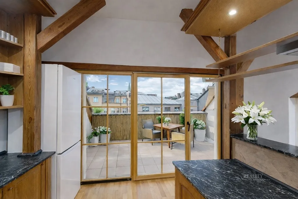 Výjimečný mezonetový byt 4+kk s krbem a terasou v srdci Starého Města