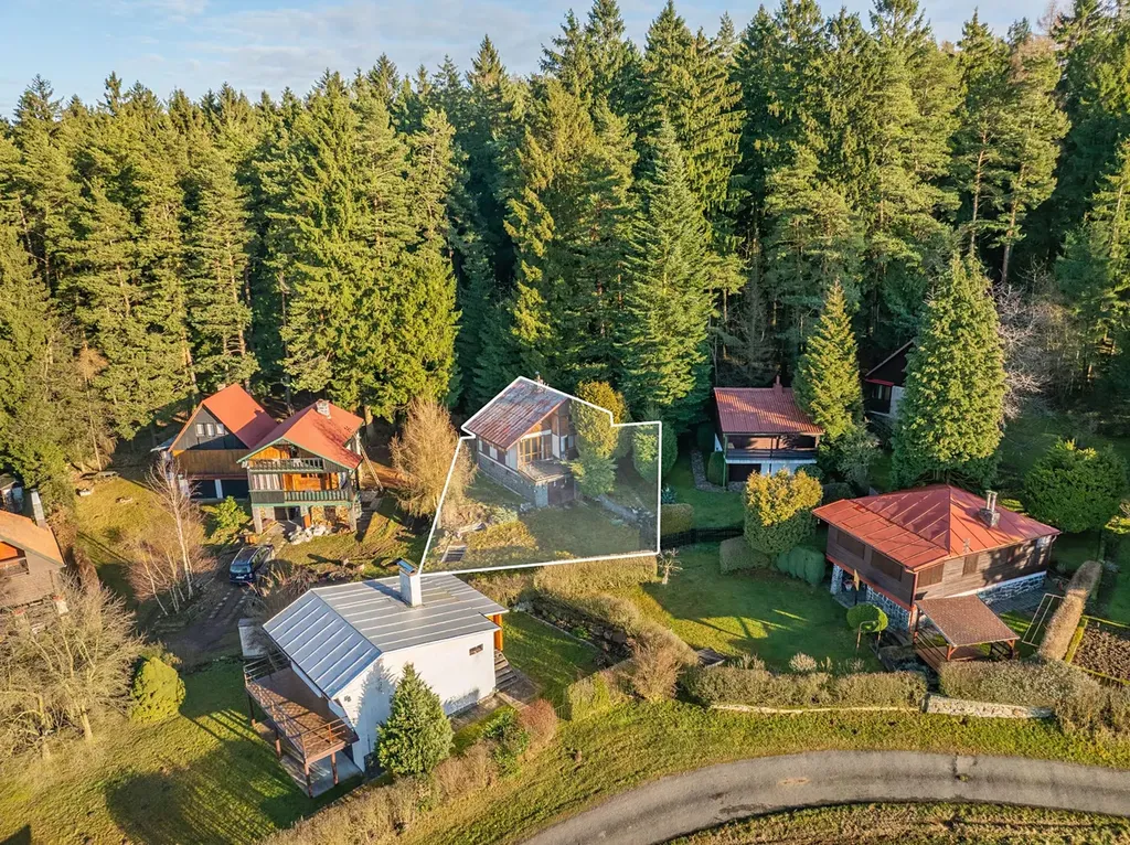 Chata je umístěna v mírném svahu s jihozápadní orientací štítu a výhledem do údolí na rybníček a protější kopec. Celkový pozemek je 348m2 a přímo za chatou je již les. Na zahradě před chatou je parkování ve vjezdu do garáže.