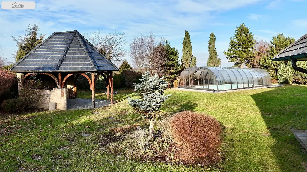 Rozlehlá, udržovaná zahrada s okrasnými dřevinami poskytuje maximální soukromí a klid. K dispozici je: