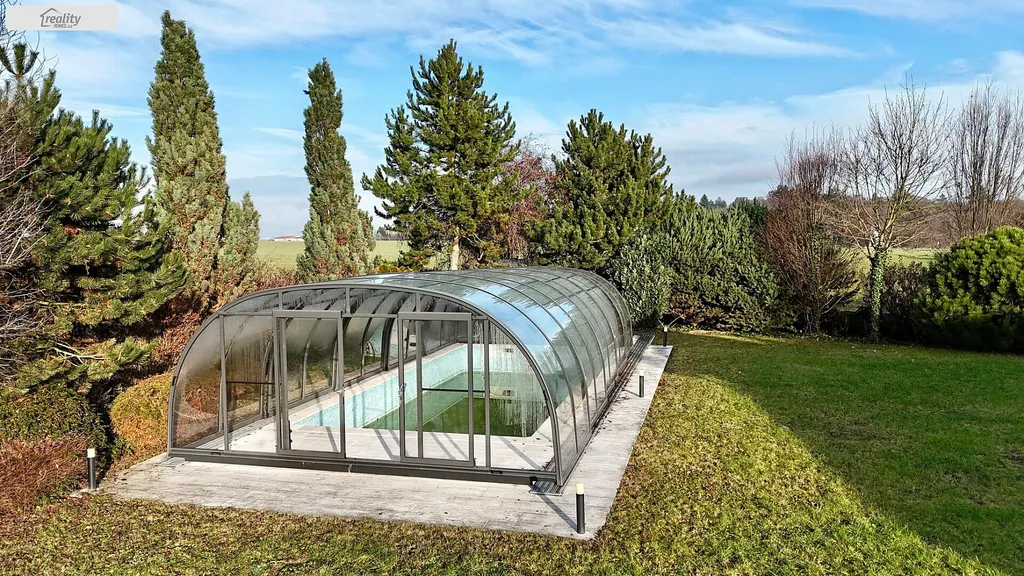 Zastřešený venkovní bazén se slanou vodou a vyhříváním, včetně automatické úpravy vody a regulace teploty