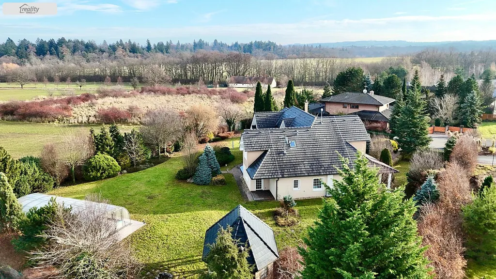 Nabízíme k pronájmu prostornou a architektonicky nadčasovou rodinnou vilu o dispozici 6+kk, situovanou v klidné rezidenční čtvrti Jesenice – Zdiměřice, přímo u západní hranice Průhonického parku (UNESCO). Lokalita nabízí ideální kombinaci klidného bydlení v zeleni a výborné dostupnosti do Prahy, s rychlým napojením na Pražský okruh a dálnici D1.