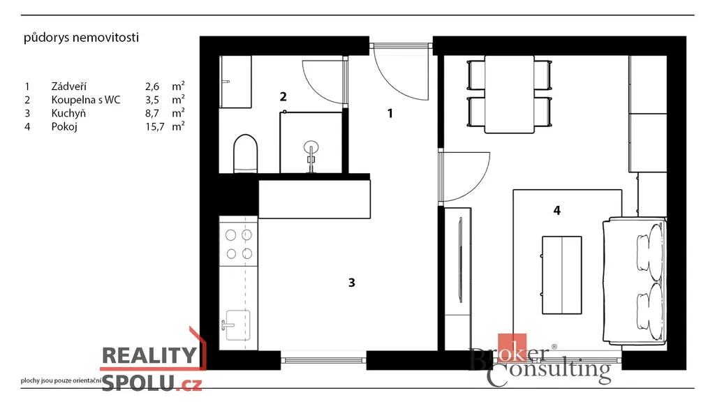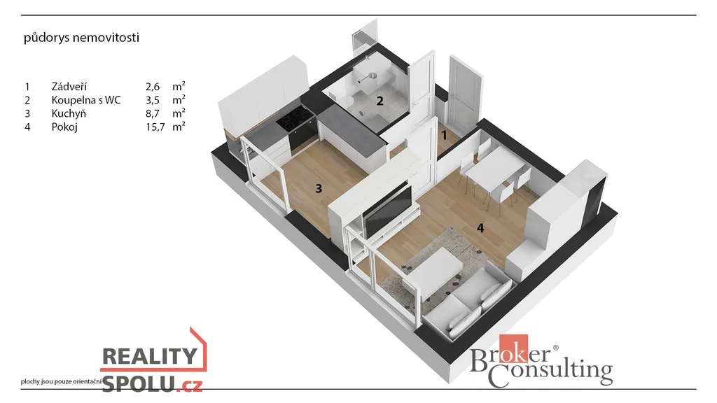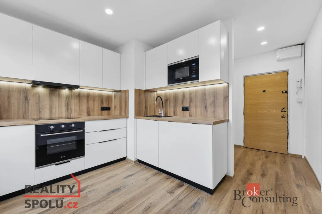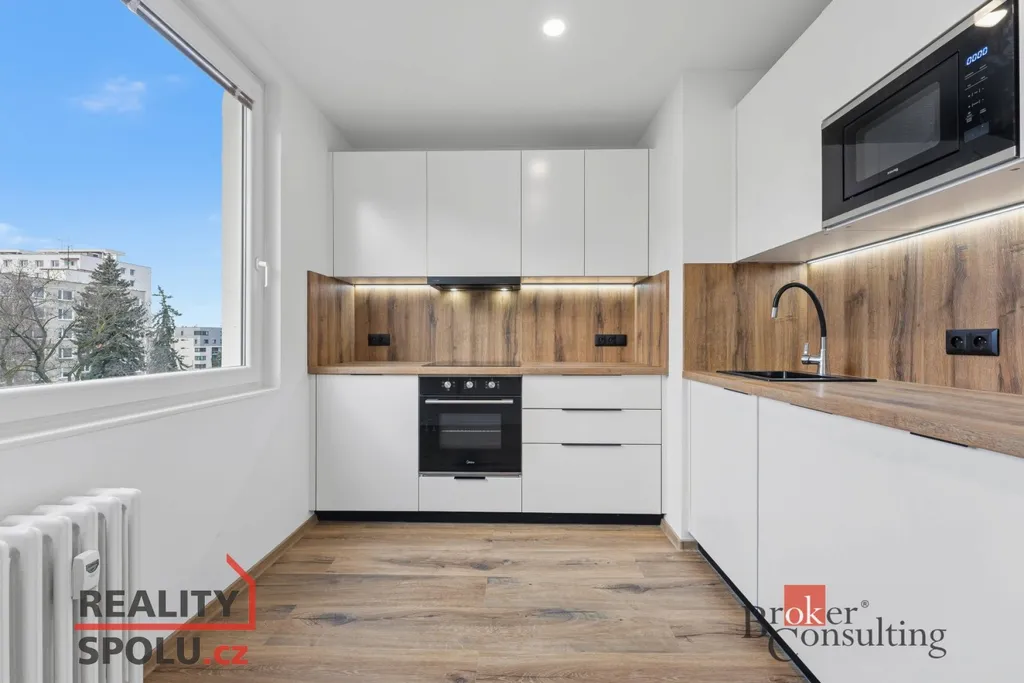 Součástí je moderní kuchyňská linka s vestavěnými spotřebiči, stylová koupelna a jednotný design celého bytu. Byt je připravený k okamžitému nastěhování. Celková plocha bytu včetně balkonu a sklepa činí cca 37 m².