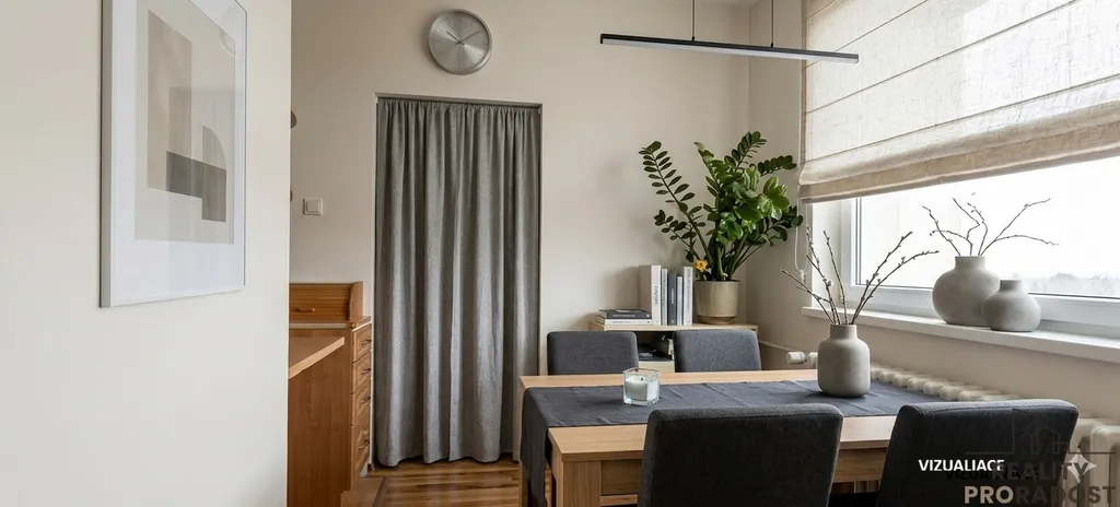 Byt je vytápěn ústředním dálkovým topením, které zajišťuje příjemné prostředí po celý rok. Taktéž centrální dálkový ohřev vody zajišťuje stálý přísun teplé vody, což přispívá k celkovému komfortu bydlení. Součástí prodeje je sušička, myčka a sklokeramická deska.