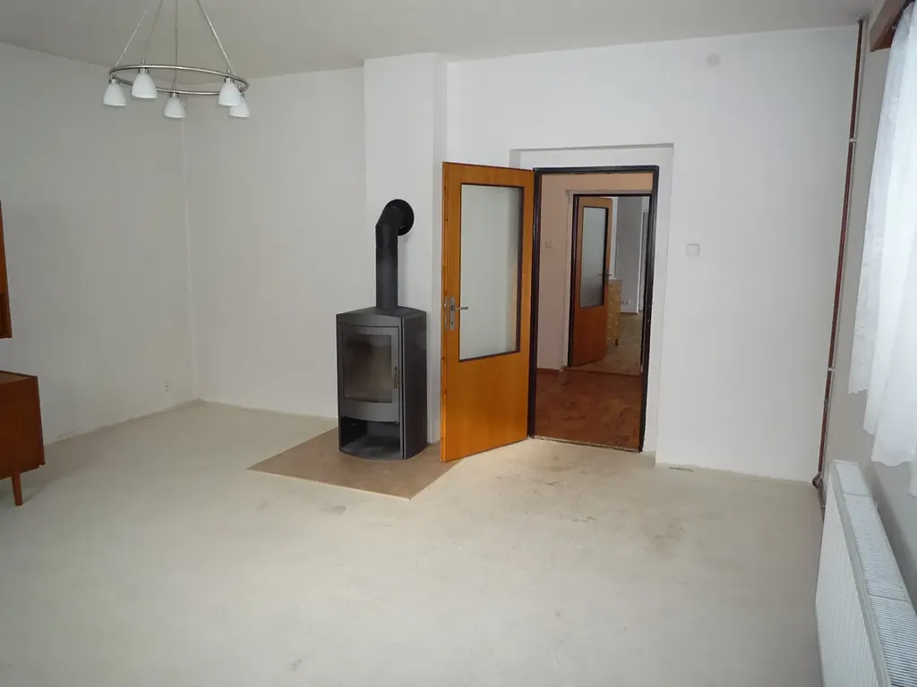Hlavní stavba rodinného domu o zastavěné ploše103 m2 je v základu původní venkovský dům, který léty prošel procesem dostaveb a přestaveb. V aktuální podobě, v jaké dům sloužil jako trvalé obydlí mladé rodiny, poskytuje ve dvou podlažích 147 m2 obytné plochy v dispozici 4+1 (viz plánky podlaží ve fotogalerii). Rodinný dům je ve stavu, kdy může být prakticky okamžitě obýván. Pouze je nutná náhrada za vysloužilý stávající plynový kotel. V obci aktuálně probíhá výstavba splaškové kanalizace a je uzavřena smluvní dokumentace vlastníkem nemovitosti k napojení. Stávající stav je odvod domovních splaškových vod do žumpy. Dům je napojený na obecní vodovod a na plynovou přípojku. Obvodové zdivo v 1 NP je 45 cm, v 2 NP jsou štítové zdi 45 cm, zbytek 30 cm. Zdivo není opatřené tepelnou izolací. Izolace stropu a šikmin 2 NP je 10 cm Orsil. Výška stropu 1 NP 270 cm, 2 NP 235 cm. Krytina střechy je plechová (alukryt šablony). Původní kamenný sklípek pod domem o výměře 7,5 m2.
