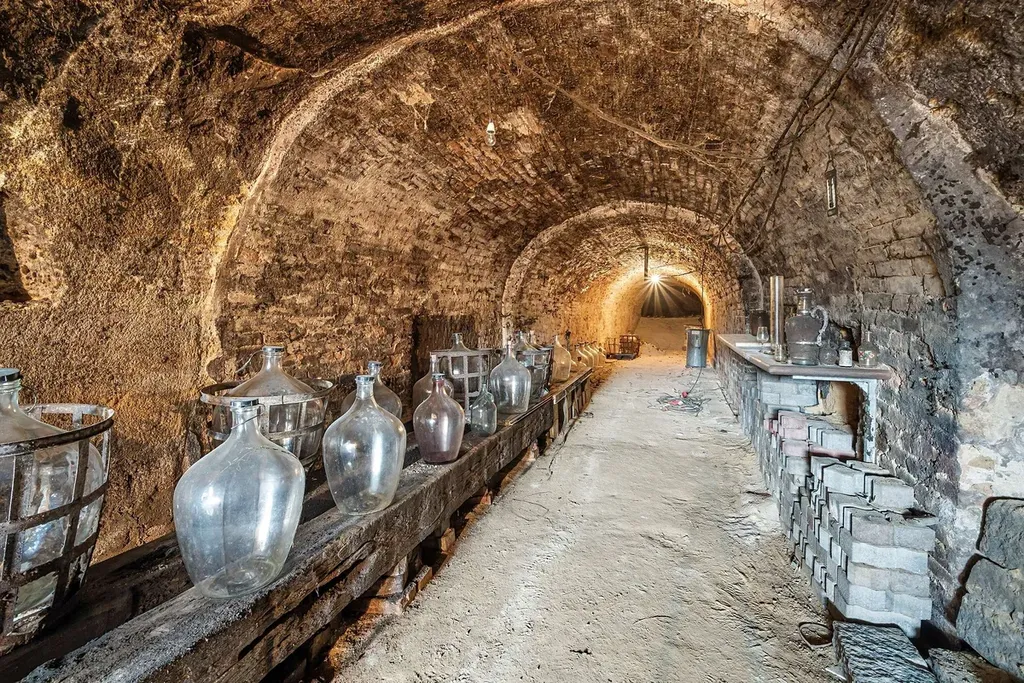 Oproti mládí domu, je vinný sklep původní s odkazem na historii vinařského kraje. Sklep je původní a jeho krásná cihelná klenba s výškou 2,30 m2, je typickým a romantickým prvkem. Podlaha je tvořena pouze jemným pískem (jako u moře). Jsou zde ponechány i původní skleněné demižony v kovových koších. Ve sklepě je po povrchu rozvedena svépomocí elektřina.
