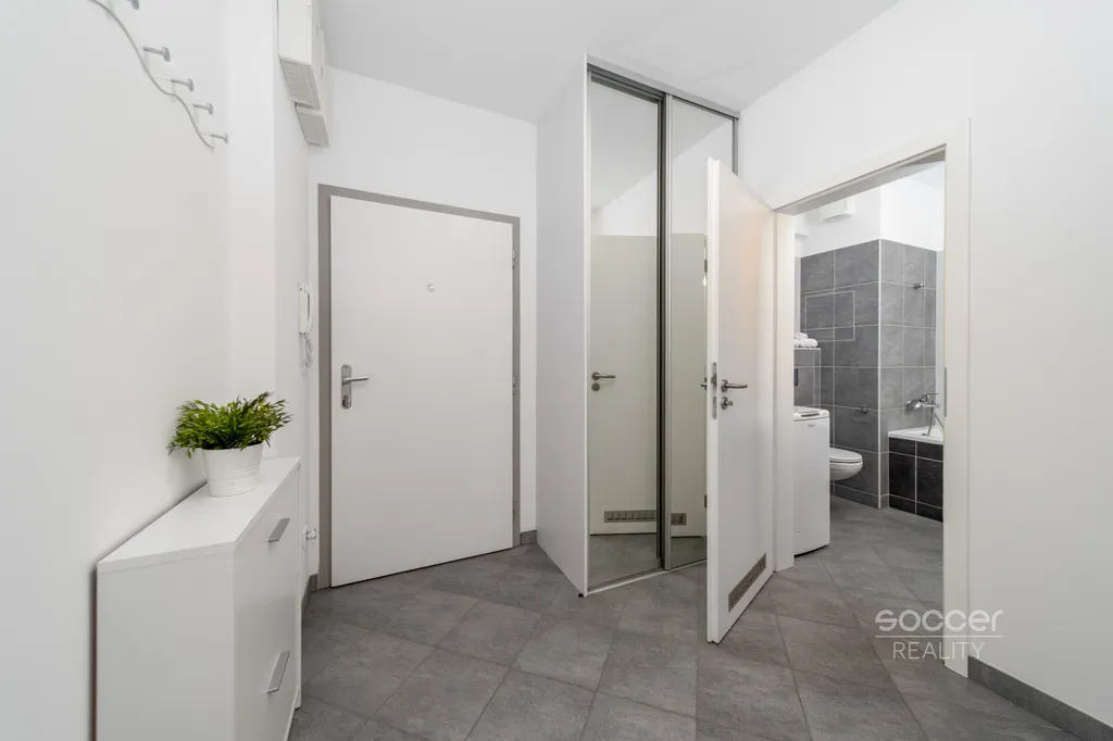 Soccer Reality výhradně zprostředkuje koupi bytu 2+kk o celkové ploše 56 m² včetně balkonu, umístěného ve 2. patře moderního bytového domu v klidné ulici Farkašova, Praha 9 – Kyje. Byt má východní orientaci, je dobře prosvětlený a vybaven klimatizací, která zvyšuje komfort bydlení zejména v letních měsících.