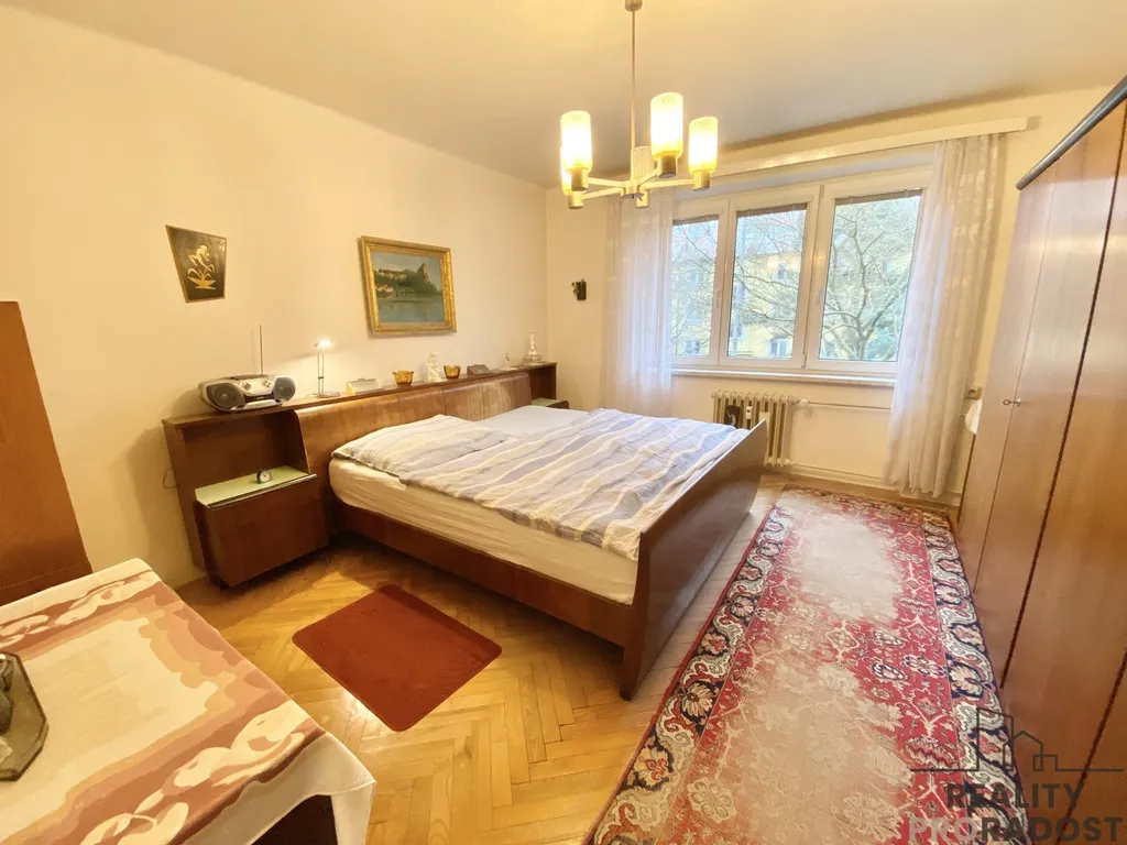 V bytě je vstupní chodba, kuchyně vybavená kuchyňskou linkou, je zde k dispozici špajz. Z kuchyně je vstup na balkon. Balkon je orientován do klidné části za domem. V bytě jsou tři neprůchozí pokoje, koupelna s vanou a umývadlem, WC je zvlášť. Byt je v původním, udržovaném stavu, což nabízí možnost úpravy dle vlastních představ. Dům je po částečné revitalizaci, jsou zde plastová okna, dům je zateplen.