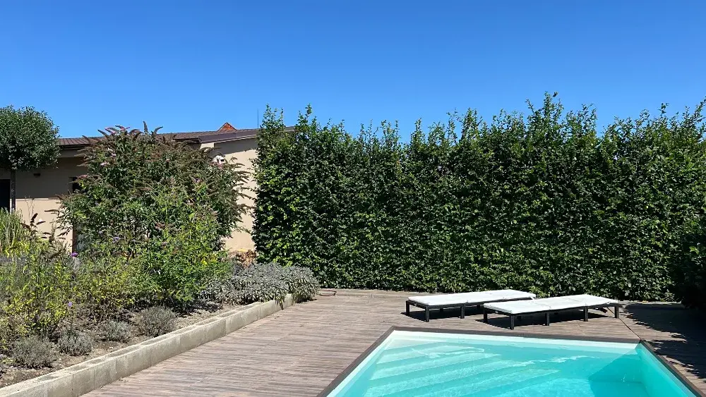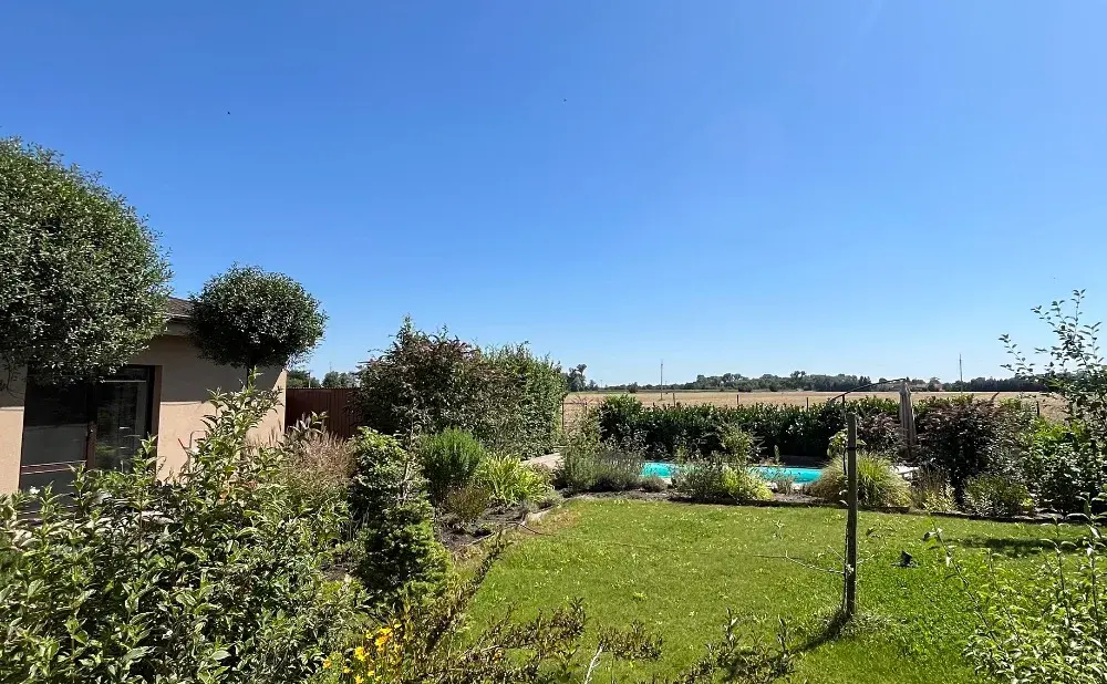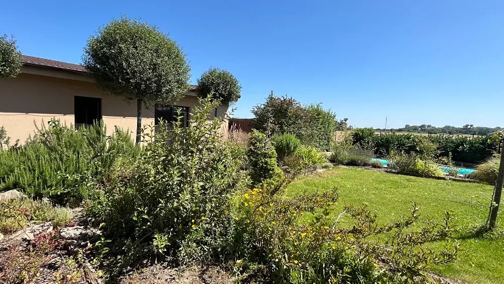 V části zahrady je relaxační zóna, kde je umístěn bazén 6x3 m se slanou vodou a komplexní technologií. Výhodou je také vlastní studna. Dále je na zahradě sklad na nářadí, dva skleníky, které vám umožní pěstovat nejen lahodné a výnosné skleníkové odrůdy okurek, paprik či rajčat.