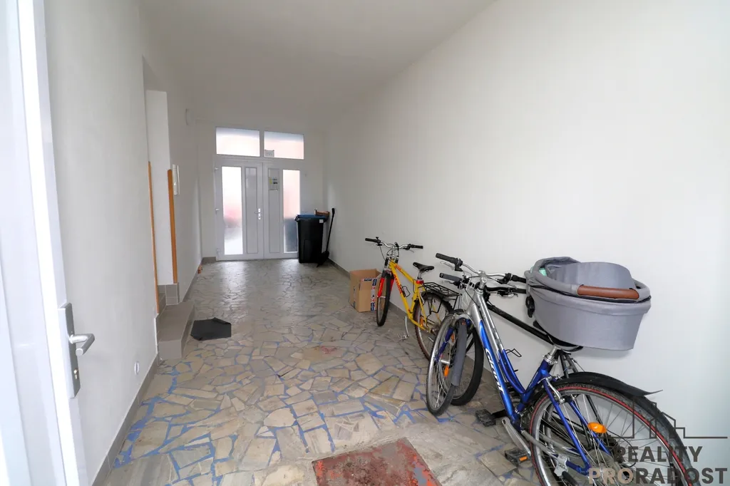 Bonus: Prostorný sklep (cca 17 m²) a průjezd – kočárky, kola, lyže, vše má své místo.