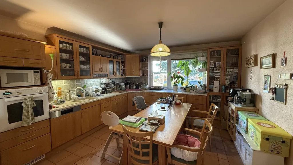 Nová prostorná kuchyně z masivu, má kromě všech běžných elekrospotřebičů, sklokeramické varné desky, myčky nádobí, digestoře, horkovzdušné a mikrovlnné trouby, i drtič na biodpad. V obývacím pokoji je pak k dispozici i velký krb.