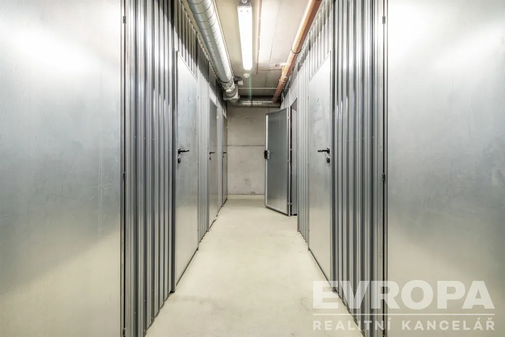 Jedna ze dvou sklepních kójí se nachází přímo za parkovacím stáním a je ideálním úložným prostorem pro sezónní věci či sportovní vybavení.