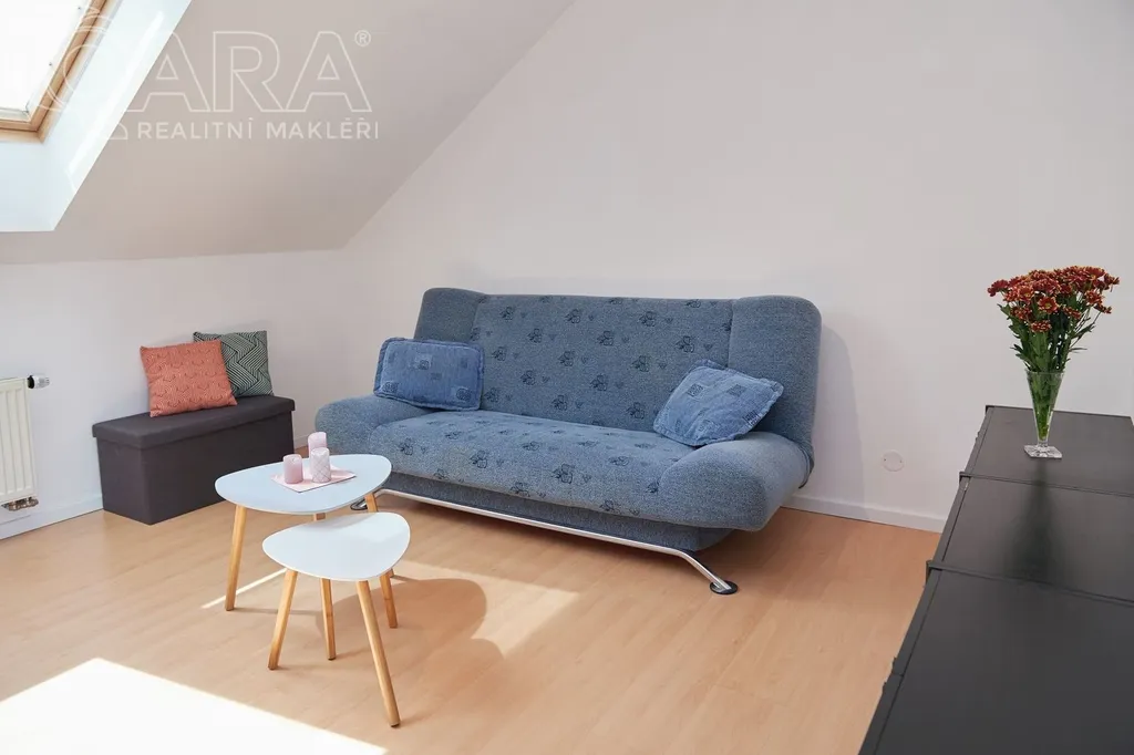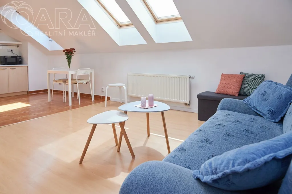 Podkrovní byt nadstandardní velikosti 55 m2 se nachází ve třetím podlaží multifunkčního komplexu budov, které slouží jak pro bydlení, tak jako obchodní a kancelářské prostory. K dispozici je také prostorná terasa o velikosti 18 m2 a kryté garážové stání.