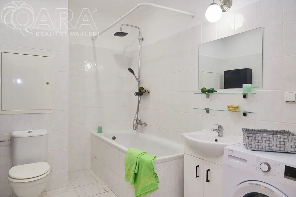 K dispozici je také vstupní chodba s vestavěnými skříněmi a koupelna s vanou a WC. Jako skladovací prostory lze využít půdu přístupnou z bytu.