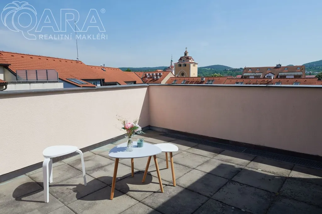 V zastoupení majitele nabízíme dlouhodobý pronájem velmi pěkného bytu o dispozici 2+kk s velkou terasou v historickém centru města Beroun. Jedná se o prestižní a příjemnou lokalitu nad Husovým náměstím nedaleko Plzeňské brány.