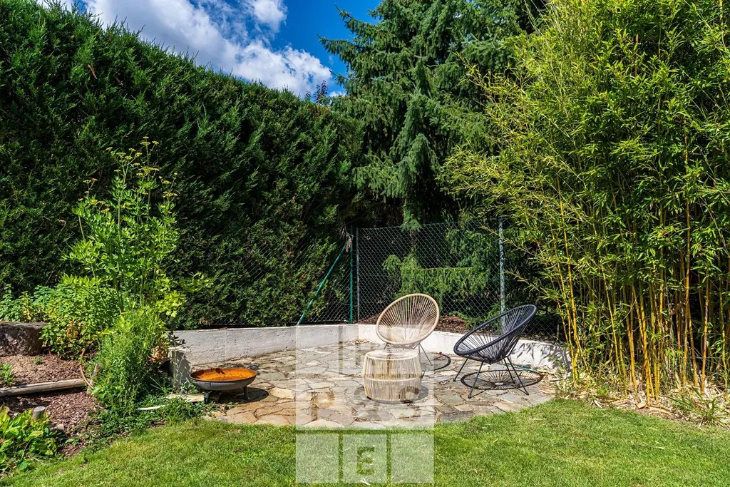 Na pečlivě udržované zahradě najdete klid a soukromí pod vzrostlými stromy, prostor pro relaxaci na 20m² terase i přípravu na venkovní vířivku.