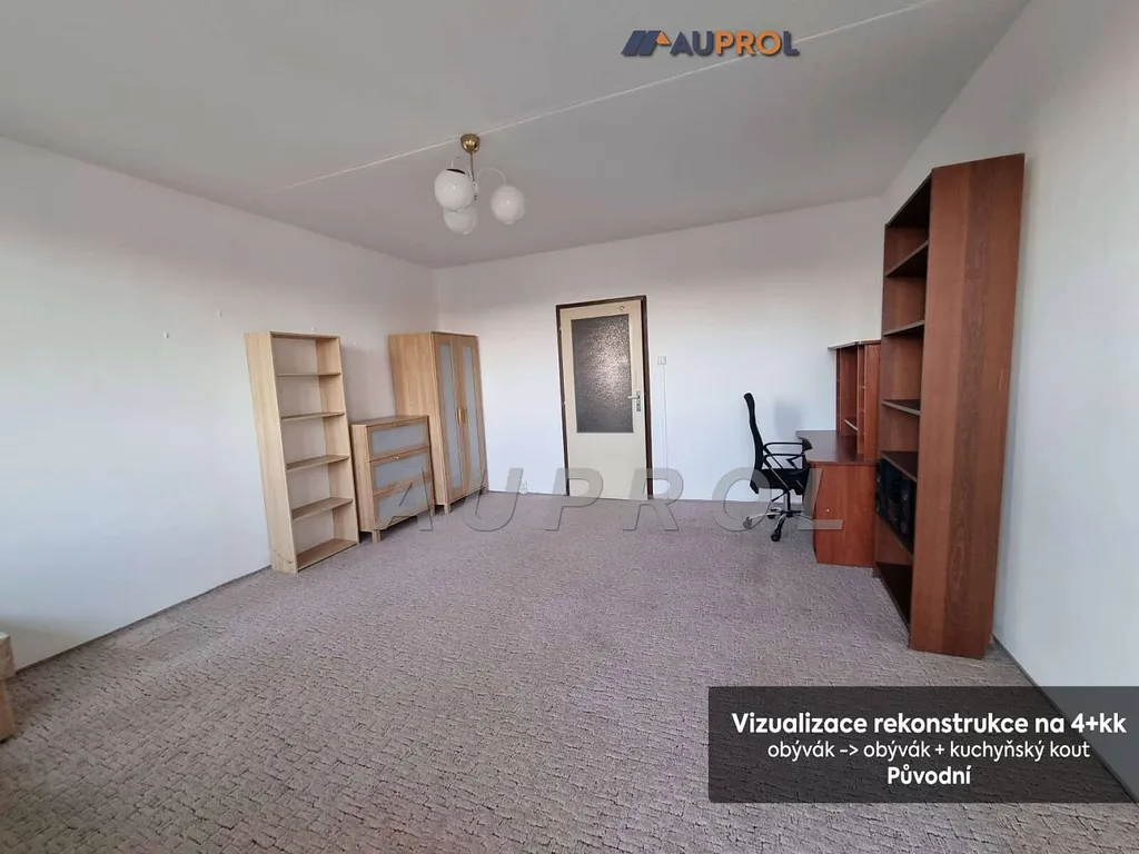 INTERIÉR – hezký, světlý a prostorný byt, původní stav před reko, úpravou možno zbudovat 4+kk viz foto, orientace SJ, kuchyň - linka, el. trouba a sporák, lednice, skříň, stůl a židle, obývák ústí na lodžii s výhledem do zeleně / Modřanské rokle, 2 pokoje se skříní a postelemi, velká chodba s možností vybudování šatny / komory, původní jádro, koupelna s vanou, odd. toaleta, plastová okna, závěsy, lustry, podlahy lino a koberce, ústř. top., vodovod, plyn není zaveden, v suterénu sklep, dohoda na příp. zanechání části vybavení ( např. lednice )