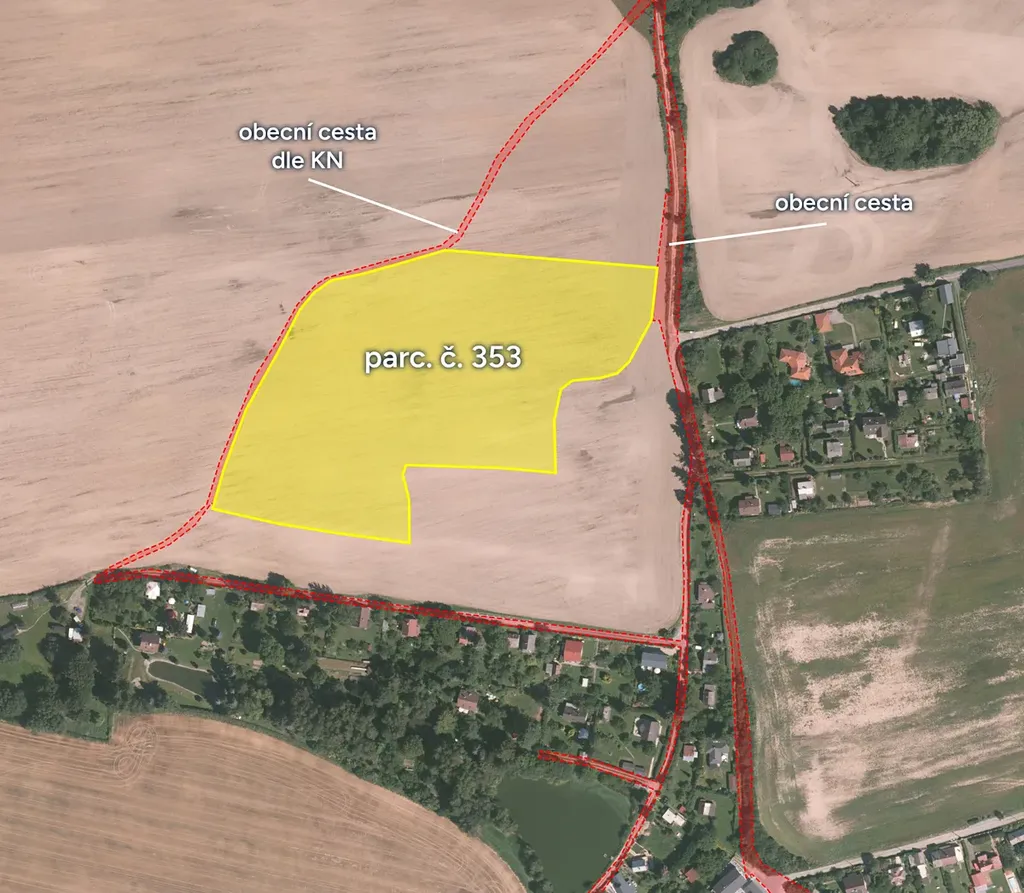 - parcela č. 353 o výměře 26 842 m² (orná půda, BPEJ 7.46 Kč).