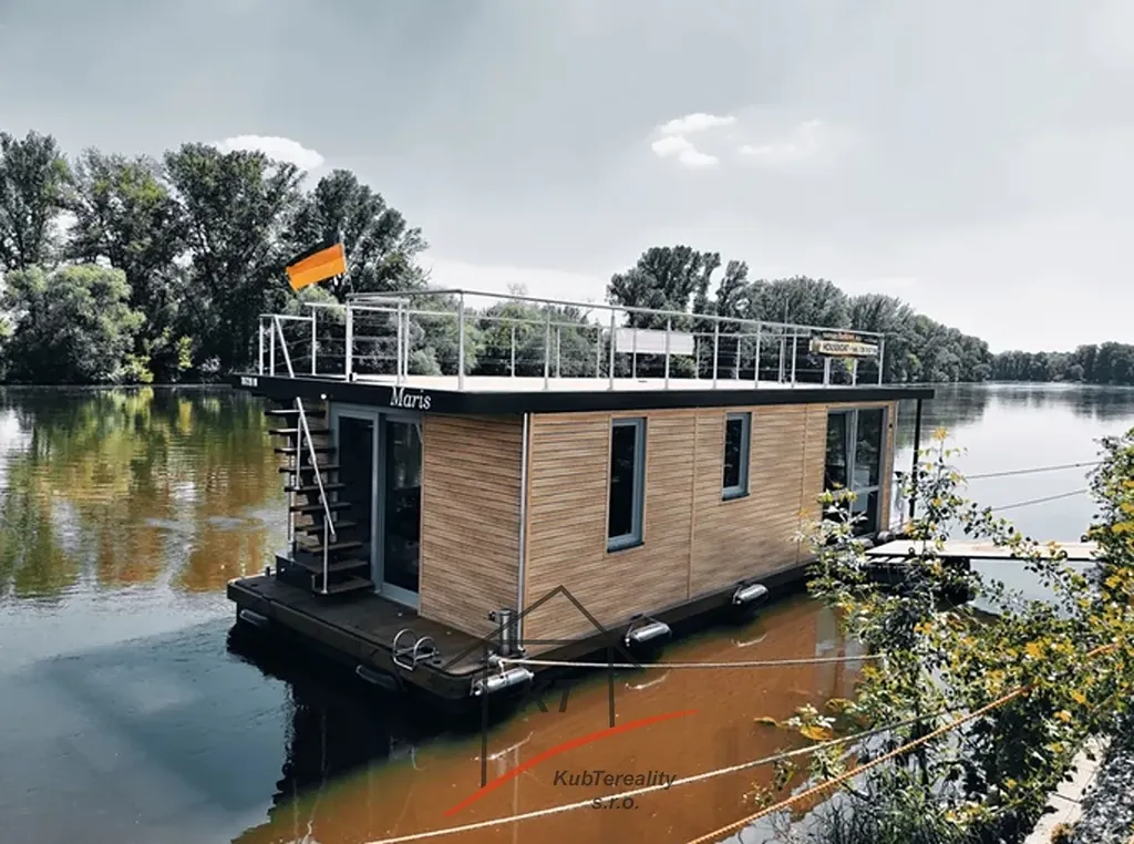Nabízíme vám kompletně zařízený Houseboat o výměře 140 m2, který poskytuje pocit bydlení na vodě pro rekreační účely. Výroba probíhá v loděnici pod dohledem mezinárodně uznávaných kontrolních institucí (Lloyd's Register of Shipping, Germanische Lloyd a Bureau Veritas). Ocelové části jsou buď z nerezové oceli AISI316, nebo žárově pozinkované oceli. Stavby jsou navrženy v souladu s místními povětrnostními, vodními a zimními vlivy. Nejprve je stavba postavena ve výrobní hale Loděnice Barkmet a pak následně dopravena do místa kotviště. Základní výbava plovoucího domu obsahuje hlavní motor (Allpa, Vetus), dokormidlovací zařízení, kotva a kotevní systémy (dalby), nádrže - pitná voda, palivová a fekální nádrž a balastní nádrže (vyvážení trupu). Plovoucí dům je vybaven nejnovějšími technologiemi pro zajištění energetické účinnosti. Inteligentní vybavení systému pro úsporu energie a technologií umožňuje dosáhnout až LEED hodnocení. Energeticky/efektivní izolace a okna s trojsklem jsou standardní řešení. Dům je vybaven slunečními kolektory, které vyrábí teplou vodu pro domácnost, ve slunném období nabízí velmi nízkou spotřebou energie. O vytápění domu se vám postarají ekonomické sálavé infra panely s nastavitelným termostatem. Všechny tyto systémy a stavební materiály pomáhají šetřit Vaše peníze i životní prostředí v dlouhodobém horizontu. Rozměry - délka - 17m, šířka- 8,2m (ocel, povrchová úprava lodní barvou HEMPL). Technické parametry a vybavení: naftový motor Solé Diesel Allpa 35 HP, Elektro 220W, přední dokormidlovací zařízení, kotevní elektrický naviják, WC s lodním panelem (lodní fekální nádrž), sprcha, boiler, cisterna na vodu 1000litrů (užitková voda a odpadní), balastní nádrže (vyvážení trupu)Vybavení - lednice, sporák indukční, mikrovlnka, alarmový systém střežení, moderní led osvětlení, elektrické vyhřívané podlahy+ vybasto (diesel. horko-vzdušní topení). Houseboat není závislý na elektro - břehové přípojce kvůli solárním panelům - velmi ekonomická spotřeba- funkčnost pří úplném vypnutí elektřiny (alarm zařízení, lednice, boiler, osvětlení ). Energeticky/efektivní izolace a okna s trojsklem jsou standardní řešení. Dům vybaven slunečními kolektory, které vyrábí teplotu vody pro domácnost, ve slunném období nabízí velmi nízkou spotřebu energie. O vytápění domu se vám postarají ekonomické sálavé infra panely s nastavitelným termostatem. Všechny tyto systémy a stavební materiály pomáhají šetřit Vaše peníze i životní prostředí v dlouhodobém horizontu. 4 místa na spaní, palubní terasa a patrová terasa s další možnosti využiti - vířivka, terasa na opalování, grilování. Při osobní prohlídce a i projížďce na vodě nejlépe posoudíte, zda je tento houseboat vhodný právě pro Vás. Nabízíme vám možnost financování naším smluvním partnerem. Pro více informací nebo sjednání prohlídky kontaktujte certifikovaného realitního makléře.